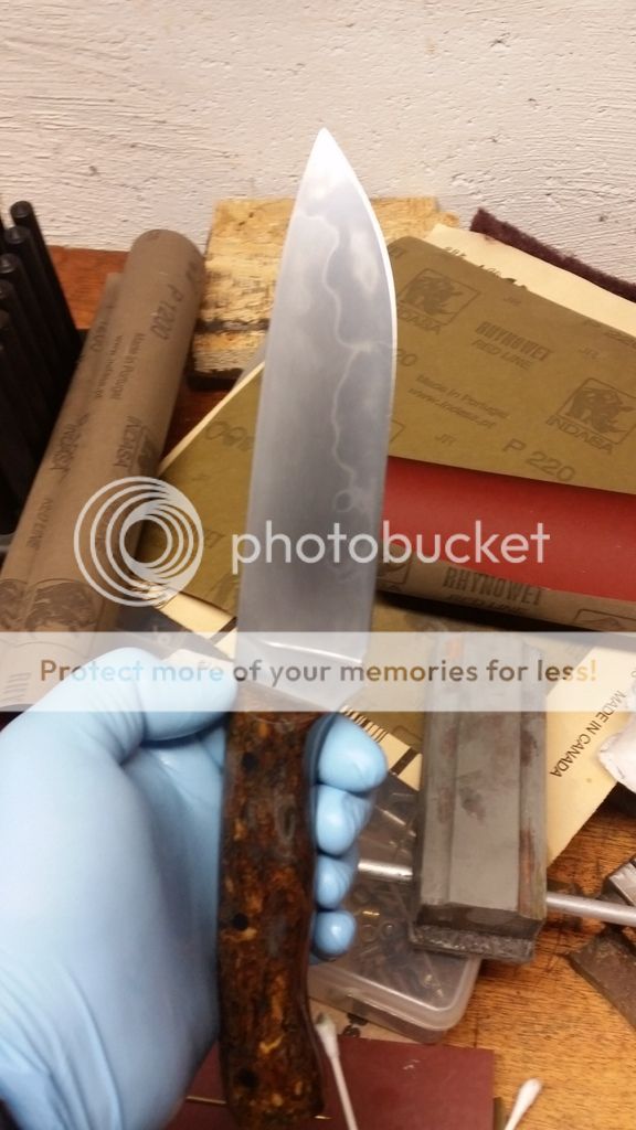 The blade has been hand rubbed to 2000 grit prior to the etch, then polished several times.
