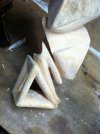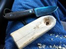 Interesting thing about Rob's knives is that they have an aggressive cut. Not sure if it is his heat treat or what, but his knives like to cut. Other knives from other makers made from Aldo's 1095 don't stack up. Closest one is a small Bushie from Tackett. Only knives that compare are made of O1 from Fiddleback and Blind Horse Knives. Thing is though, I always come back to my Creekster. The steel thickness, Scandi grind height and handle geometry make it the least fatiguing knife I have. The WoodChunk feels great also, but due to the fact it is build to cut man hole covers in half, does require more oomph to cut, and with the delicate stuff I do, the Creekster is like cutting with a scalpel.