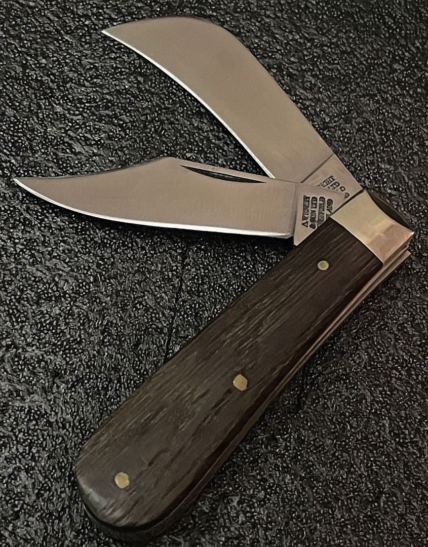 Love the blade on that one and looks comfy in hand!The only knife with wood handle I'm carrying this week is this Italian CEM agricultural sheepsfoot with bubinga covers: