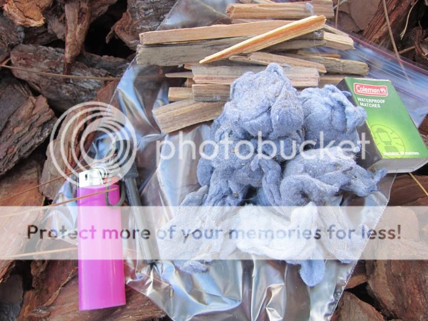 I also carry waterproof matches, a Bic lighter or 3, a mag bar, and a ferro rod.
