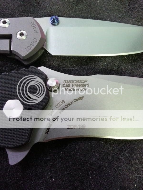 Do you guys like Logos and other information written on the blade itself? Personally I do, a little, but sometimes it's way too much and it really looks stupid. Kershaw, ZT, and sometimes Benchamde do this alot. All I like to see is the manufacturer logo and the blade steel type, and they should be tucked away in the corner so wear and tear doesn't rub them off. Serial numbers, country of manufacture, production date, designer's name... ect all that would be more welcome on a little info card that comes with box and papers, like CRK does, or engraved inside the scales. A completely blank blade looks a little plain, I think a small CR logo would look nice just left of the thumbstud. Look at this 0350. It's like a book printed on the blade. I love that knife though.