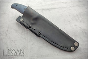 Leather sheath with damascus inlay.