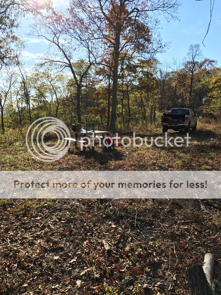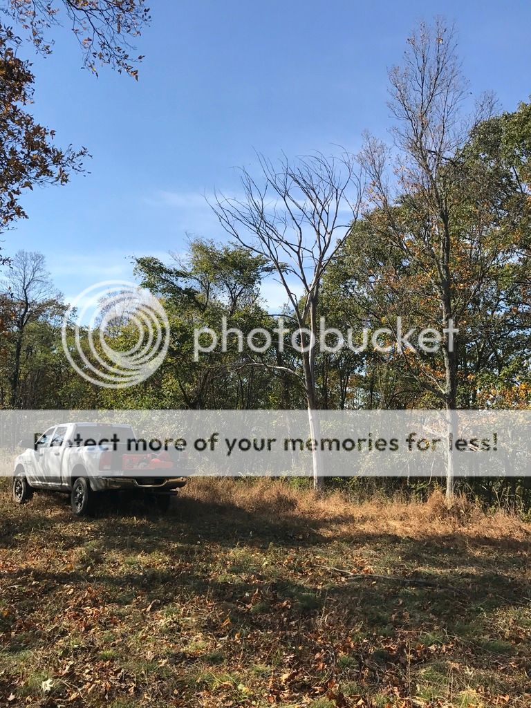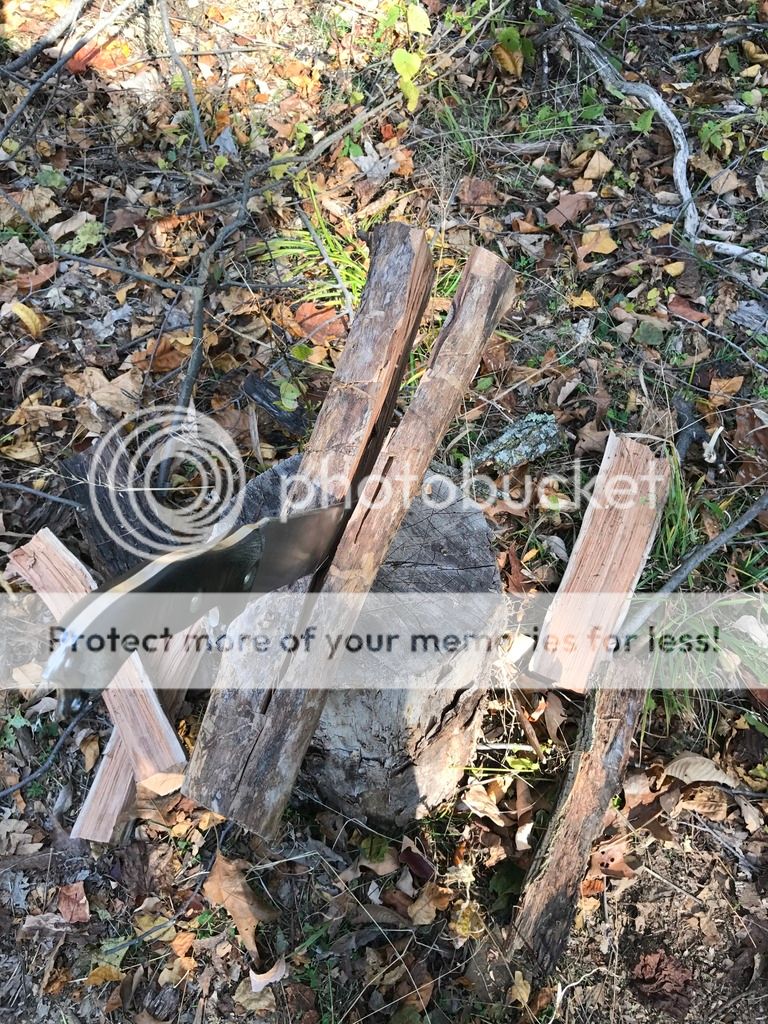 I hadn't been to my land since August, so I went out today just to make sure no trees had fallen on the driveway and to clear out some of the tall grass where we will be camping next weekend. Fortunately, no trees had fallen on the driveway, but there was a dead one close to the campsite, so I decided to chop it down. Unfortunately, I ran our of chainsaw gas before I finished limbing the tree. On the plus side I had a couple knives with me.