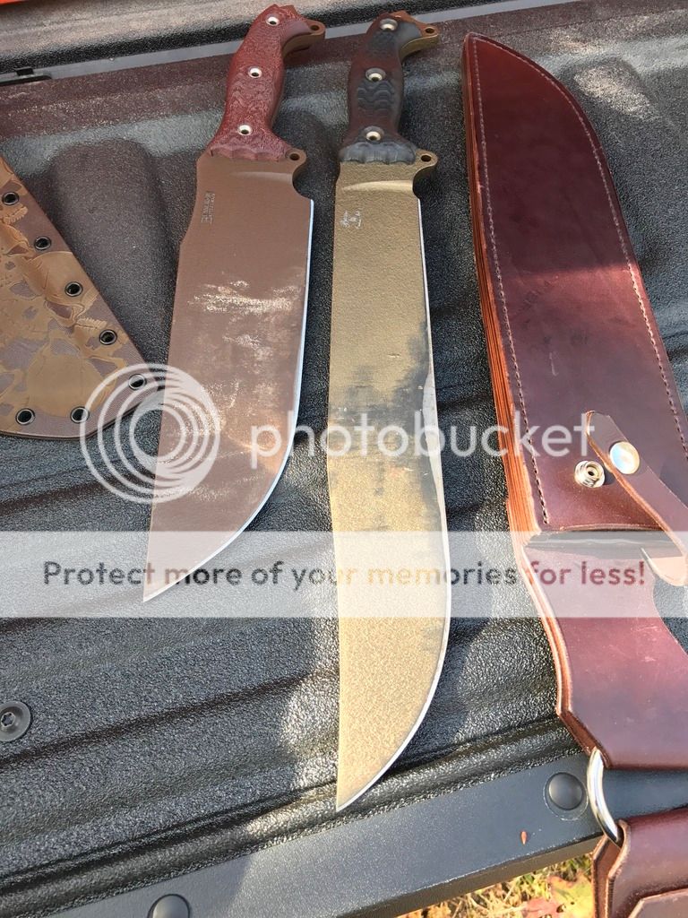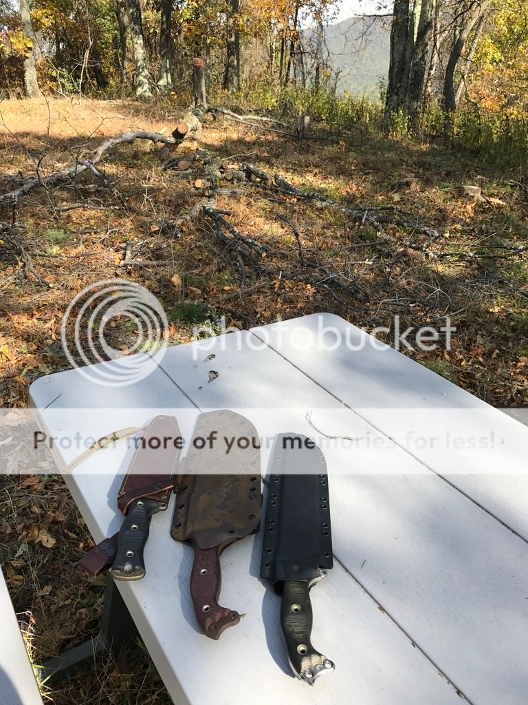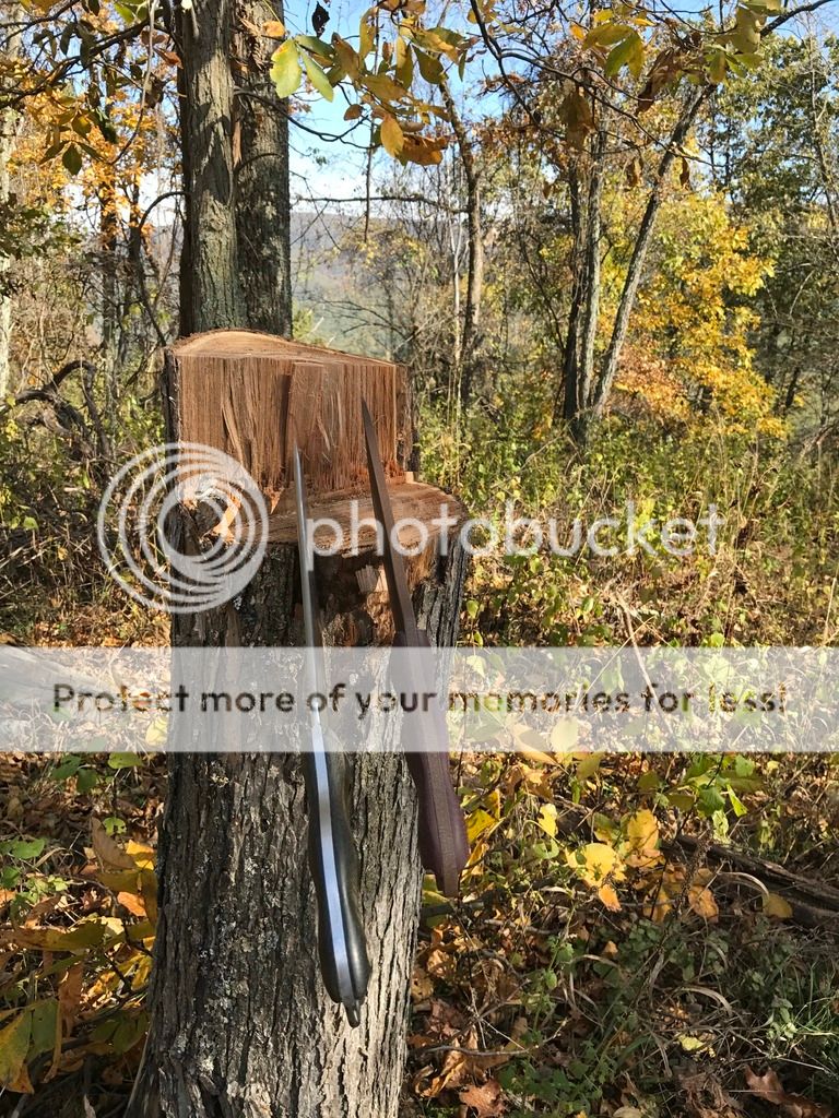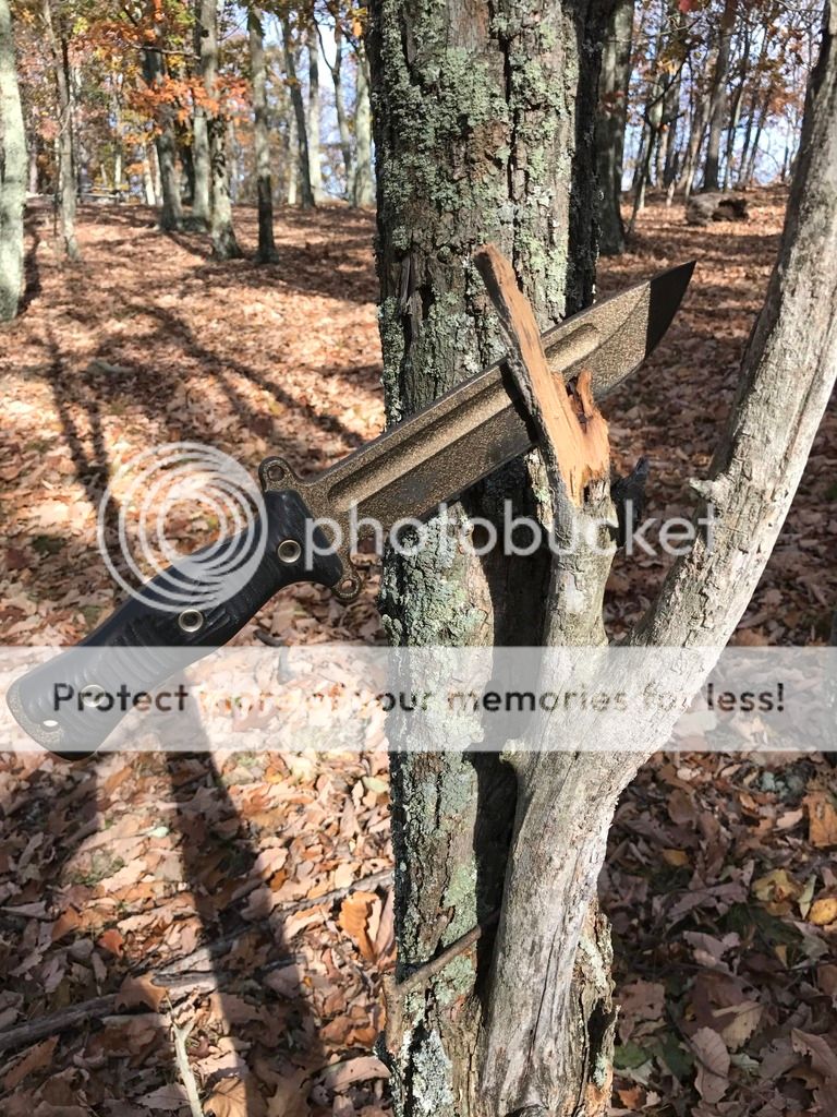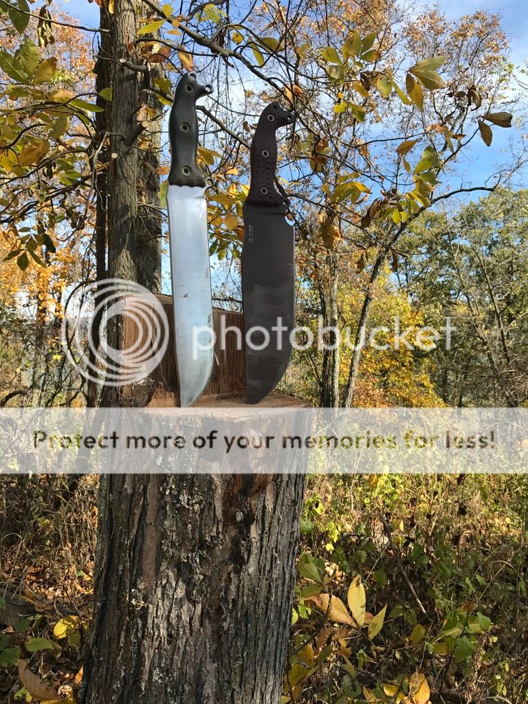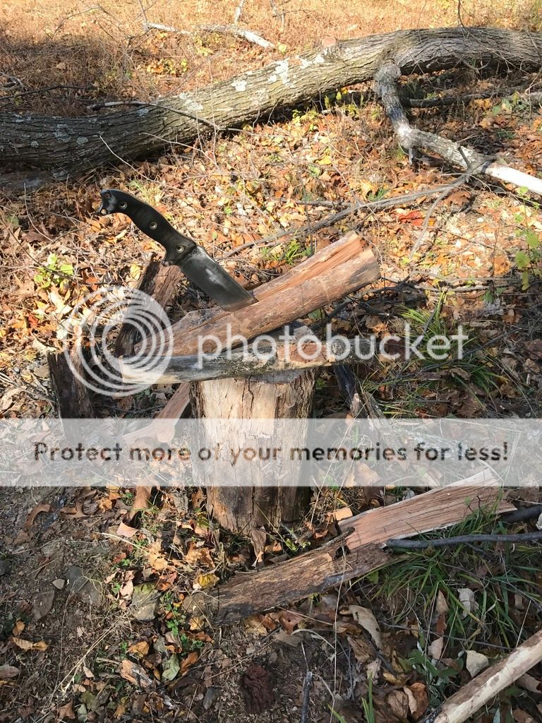 I did some chopping with both the BG WTF and the NMFBM as well as some batoning. The WTF has the factory edge, but I put a 19 degree edge on the the NMFBM recently and it's screaming sharp with the shoulders knocked down a bit. Both performed very well with what is some very hard wood.