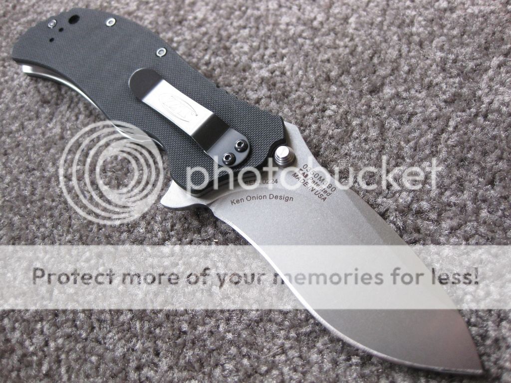 Visually the knife is in like new condition, it has never been carried, never been sharpened, and never cut anything. I have removed the torsion bar to de-assist the knife, I purchased and installed larger diameter phosphor bronze washers, and I purchased and installed 3 titanium barrel standoffs. The detent is pretty good and with the right technique can be flipped with no wrist flip.