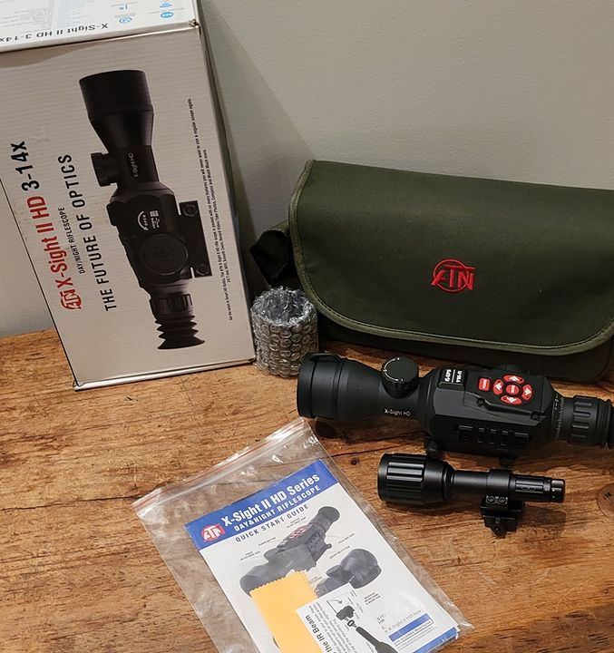 ATN X-Sight 3-14 scope as shown. Estate item. I tested it and it works great with the illuminator and while I am no expert the illuminator is required to use at night unless there is a bright moon. Cool, fully digital recording gun cam and allows you to select cross hairs, brightness etc. Main unit uses 4 AA batteries. Illuminator uses CR123. Looks barely used. That is all I can tell you. $295 shipped OBO.