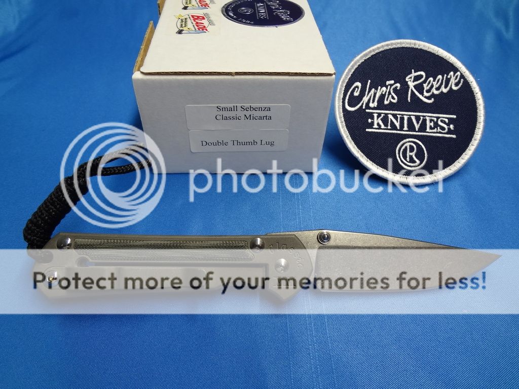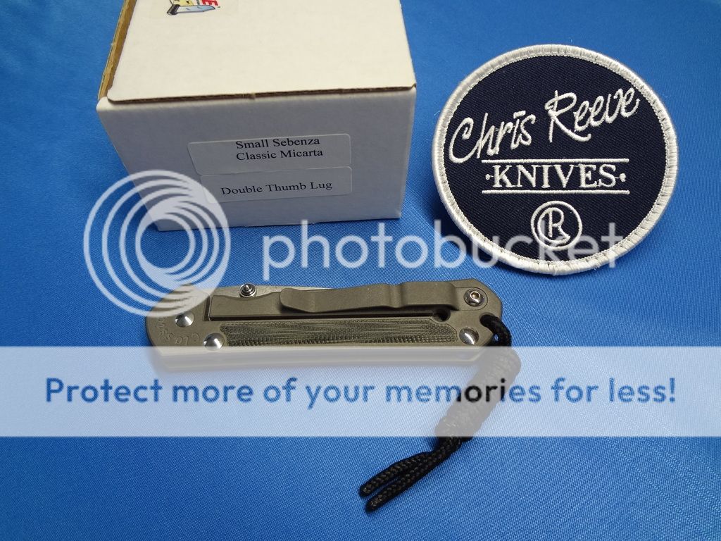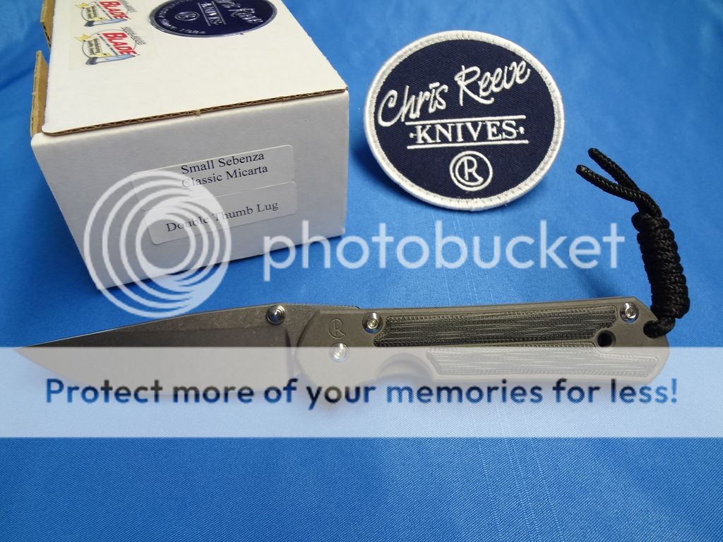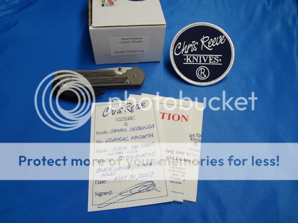 I have for sale a new Small Classic MM Sebenza with Micarta inlays. S30V centered blade with double thumb lugs, solid lock-up at approximately 50%. Includes original box, registration paper work, wrench, and birthday card that is dated May 31, 2007.
