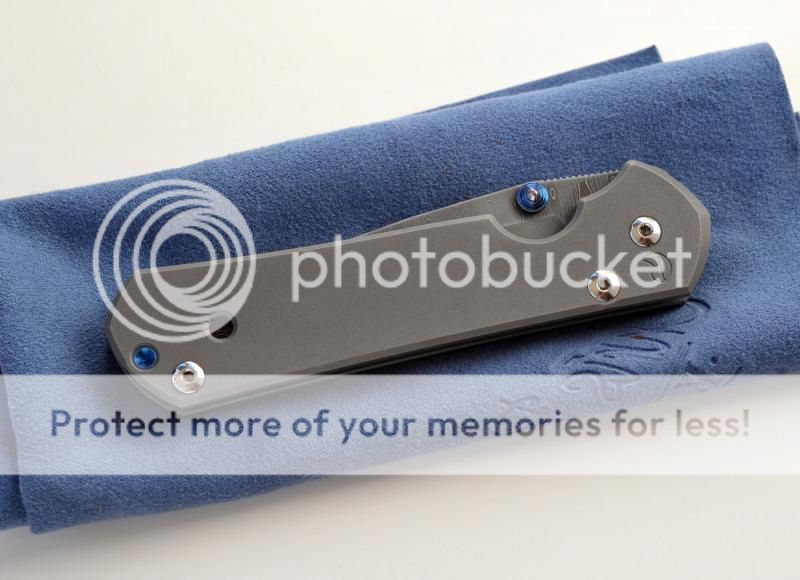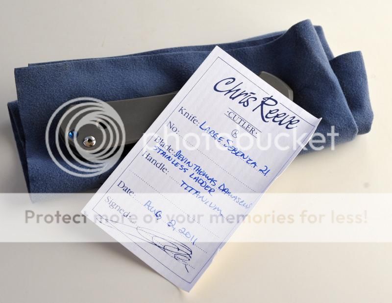 First up the Sebenza. While I absolutely love this knife I just can't get myself to actually carry and use it like I had planned. As you may be able to see in the photo's there is some very (very) minor handling wear. I play with this knife quite a bit around the house, so the blue on the thumb stud has started to fade just a little bit. There are some extremely faint spots on the edges of the non-locking handle purely from handling. I do not wear any rings on my right hand so these must just be from setting it down on the coffee table, counter etc. They are extremely minor and only show up at some angles. The knife is crazy smooth and makes all the right Chris Reeve "sounds" when locking, closing and opening. It has never been sharpened and I have only used it to cut paper (envelopes and the such). It's a really fantastic knife and while I hate to see it go I just can't justify something that I can't carry. I am not looking to sell right at the moment as I would prefer a trade.