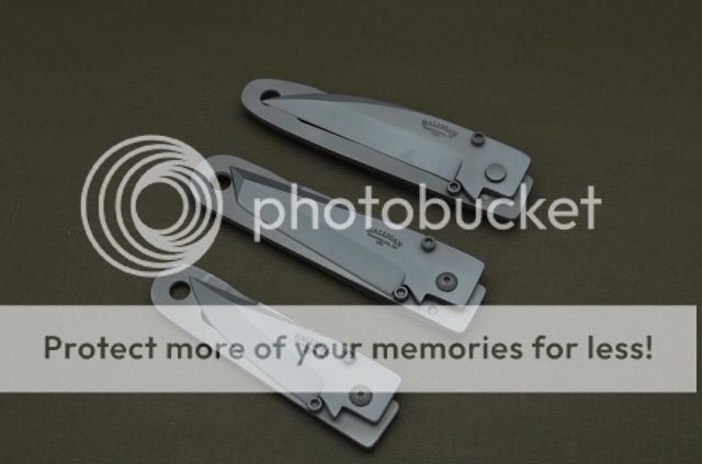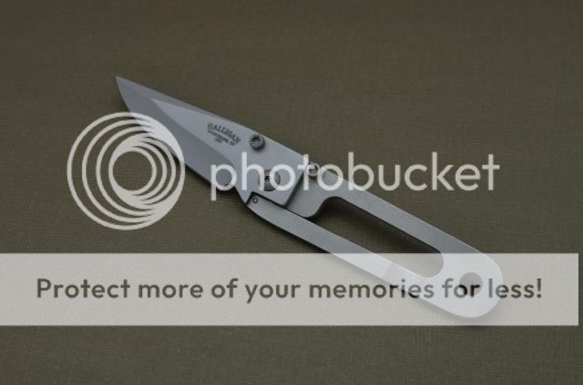 This is a like new condition. Ed Halligan K.I.S.S. small version. Drop point blade. The is a small rub line on the back handle from opening and closing the knife. It is unused or carried. Just fondled. Very sharp. It does not have a pocket clip. Or any style of clip.