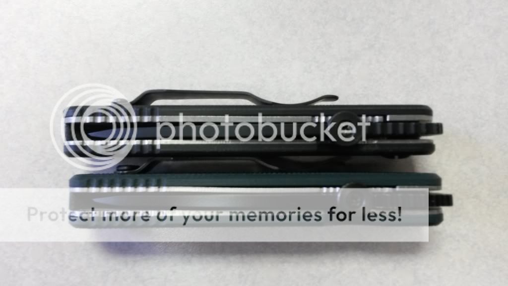 #2 - 2013 Emerson Christmas Mini A-100 BT - Limited Edition Forest Green - Serial #957 - This one is new, unused, in original box with everything. It arrived and has sat on my desk at my office since then. Haven't carried or used it. Centered, solid, perfect! I really like the color of the G10 and the added grippiness over the standard black. These were $195.95 and were very limited in quantity. I'd like SOLD shipped