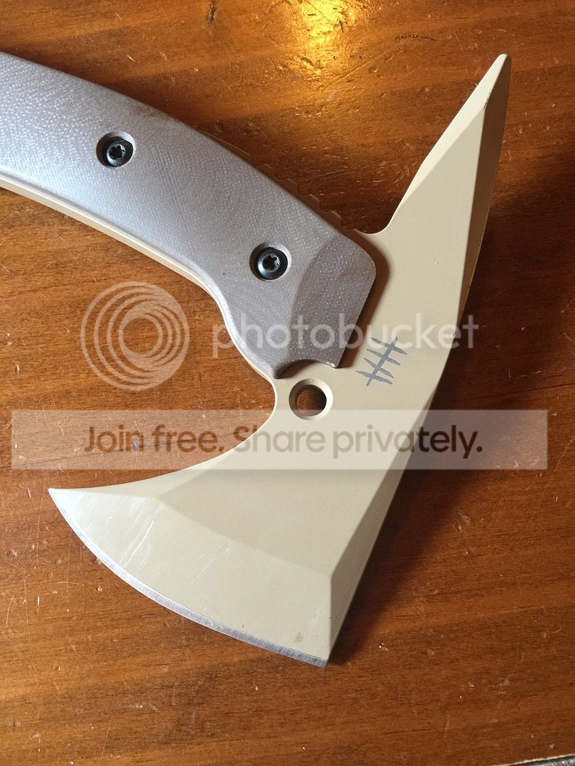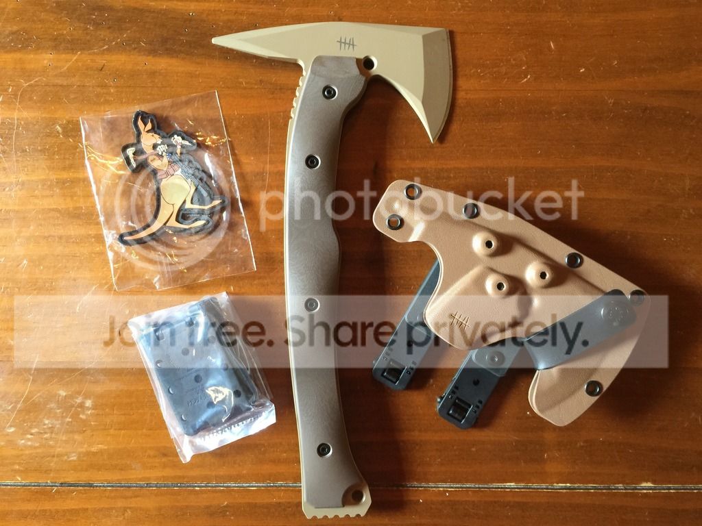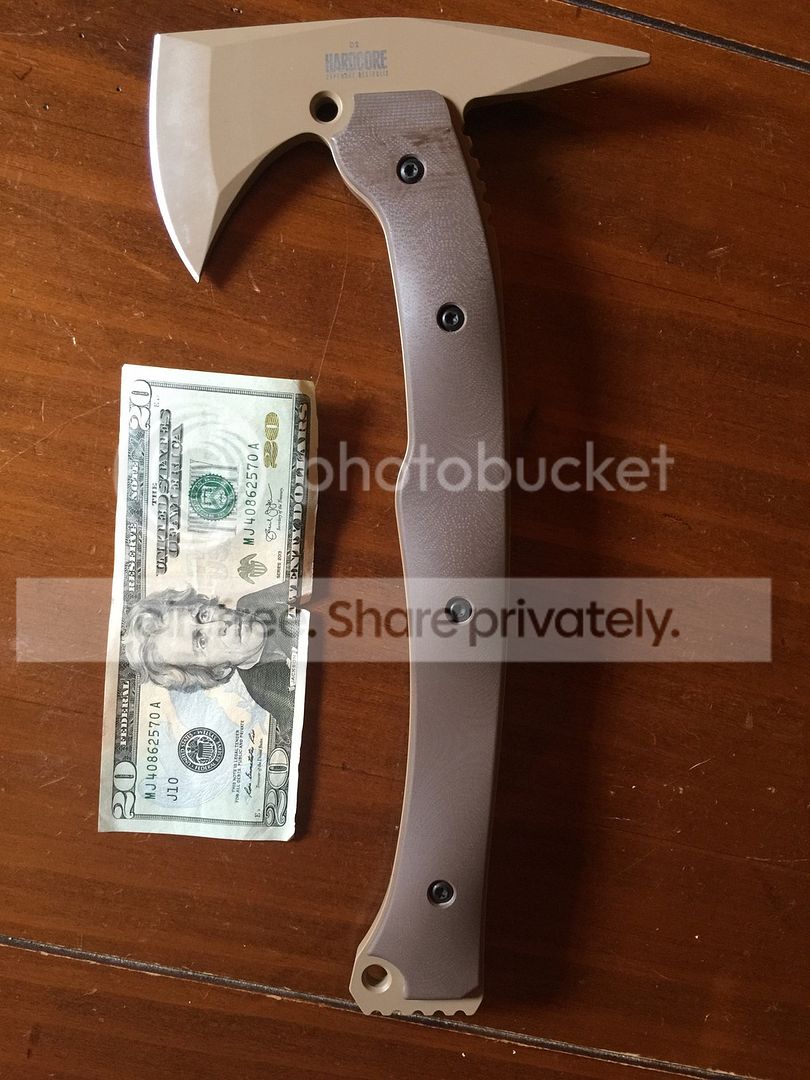 Selling my Hardcore Hardwear LFT01 Tomahawk in tan. I've only cut and bucked up a couple small dead red pines with this beast. Some marks and scratches on it from the use. It's stropped to a scalpel sharp edge. Paid $400 and asking $300 shipped via PayPal plus fees.