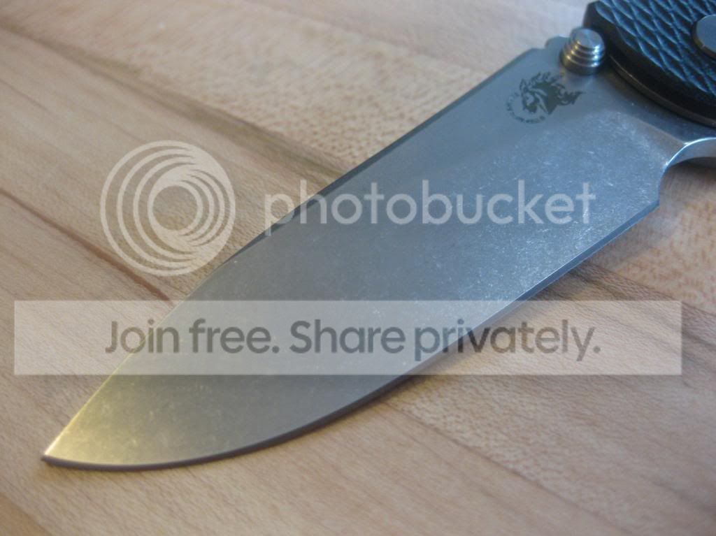 The blade & lockside are stonewashed, the action is super smooth, and the lockup is at about 30% of the blade tang.