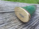 Handle Materials: Forest green burlap micarta, Red G-10 liners, Brass Bolsters