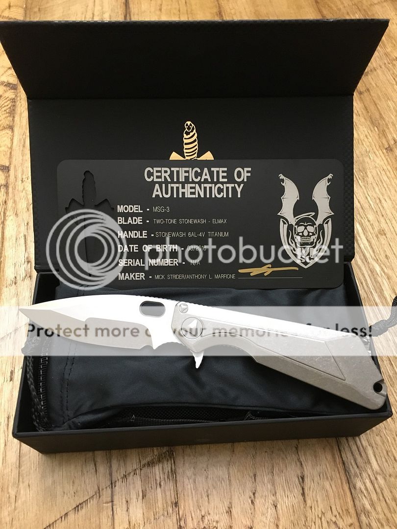Details: Elmax 2-tone compound grind blade (stonewash/satin). Integral frame. Includes all packaging.