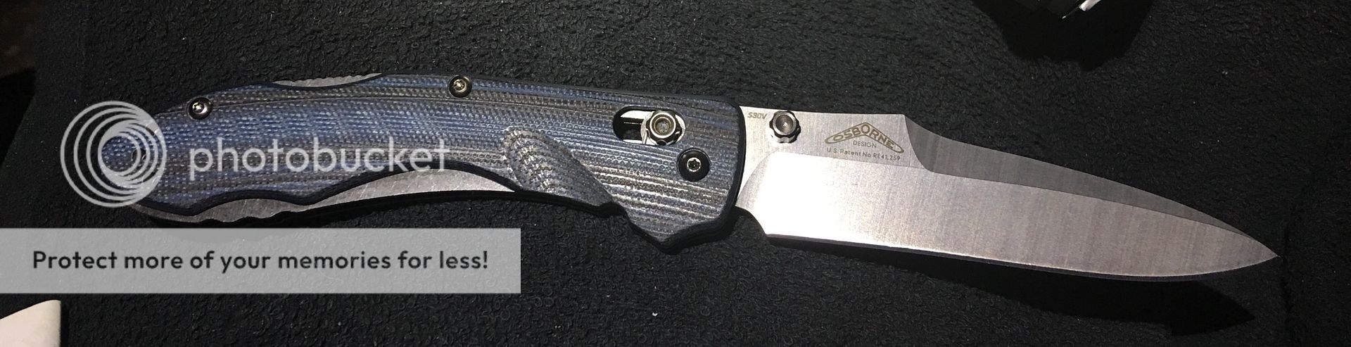 1) BM 635 Mini Skirmish. This thing has a smoooooth action. Like butter. Centering is a little to the right but no rubbing. It has a small scratch in the titanium that I tried to capture on camera. Asking $160 net to me. SOLD