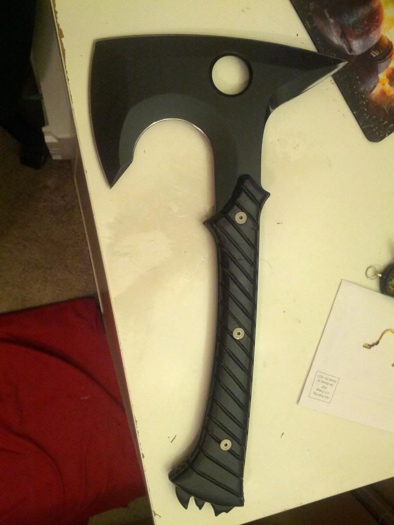Aureus, named after the Golden Jackal is the more wicked, demented, and generally meaner little brother to the Anubis tomahawk.Designed with input from Army special forces soldiers, this close quarters battle tomahawk is made to intimidate, and cut like crazy.With sharp edges all around, and a molle ready locking kydex sheath for instant deployment and secure carry, the Jackal rounds out an urban or wilderness combat kit with both deadly and utilitarian purpose.