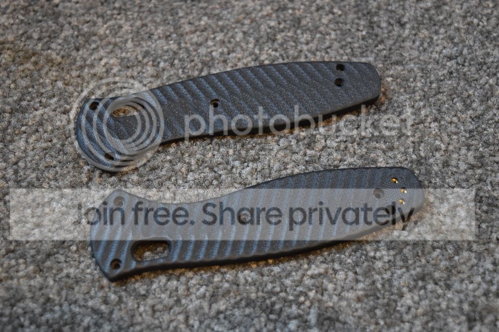 I have up for sale a new/never installed set of Allen Putman black G-10 scales with a grooved pattern for a full size Benchmade Barrage. I purchased these a number of years ago, never got around to installing, and forgot they were in the drawer.