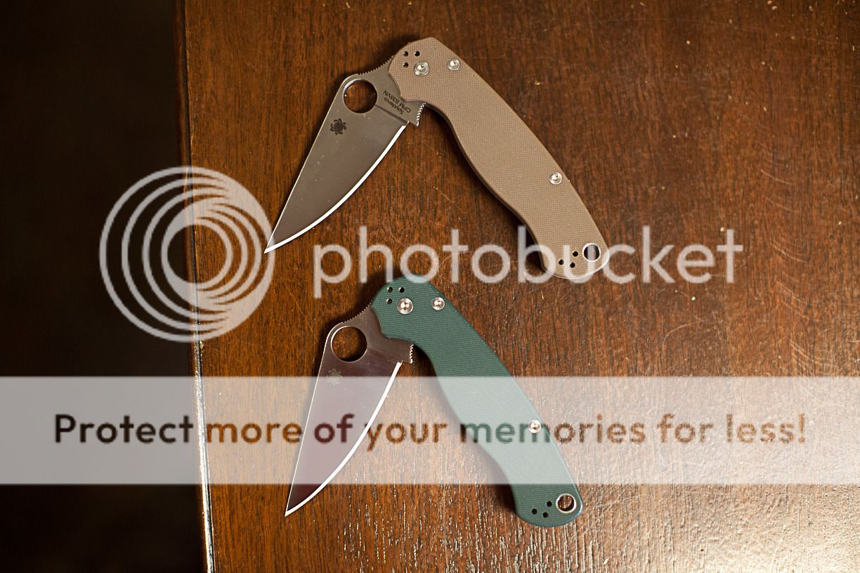 For sale: 1. Sprint Run Green G10 with CTS-204P Carpenter Steel--SOLD shipped. No box. Unused, factory edge. SOLD 2. Coyote Brown G10 with S35V Steel--$OLD shipped. No box. Unused, factory edge. PM if interested. NO PAYPAL! Money Order or personal check only.