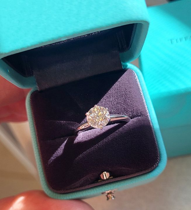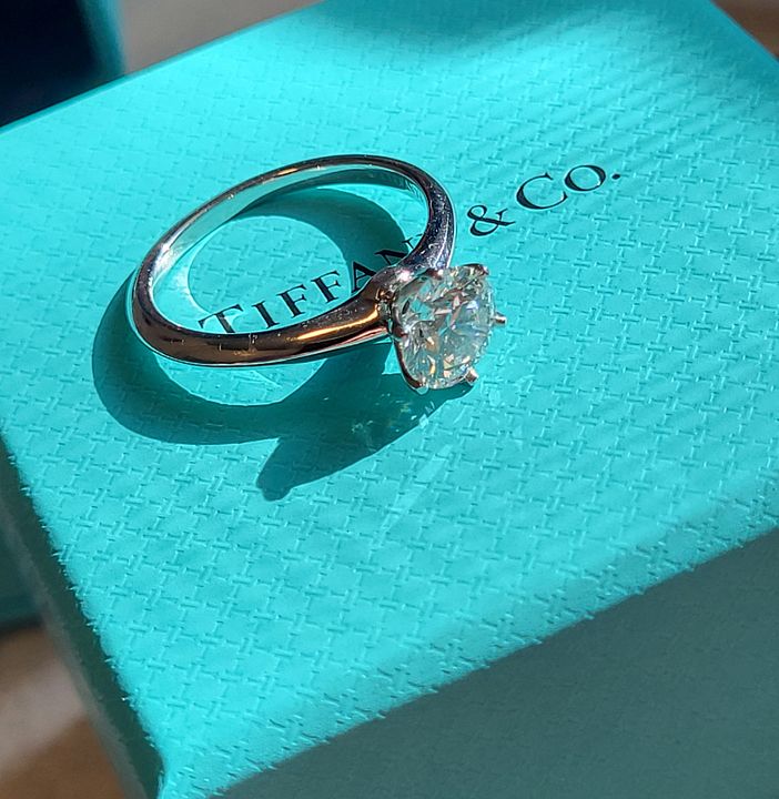 Box and papers. Tiffany appraisal letter for $30k. 1.46ct round brilliant cut F color VS1. Platinum Tiffany setting. This is a killer diamond if you know anyone looking for a ring. Overnighted and insured. Pictures will not do it justice but I will record a video outdoors or under a white light so you can see this diamond sparkle with color.