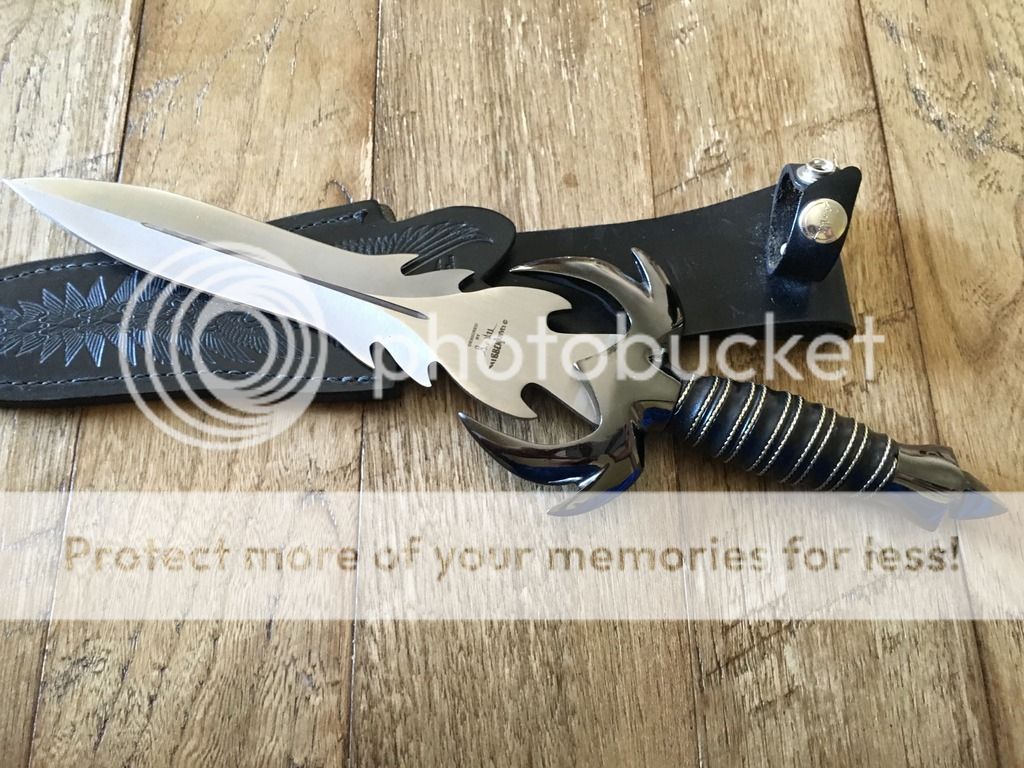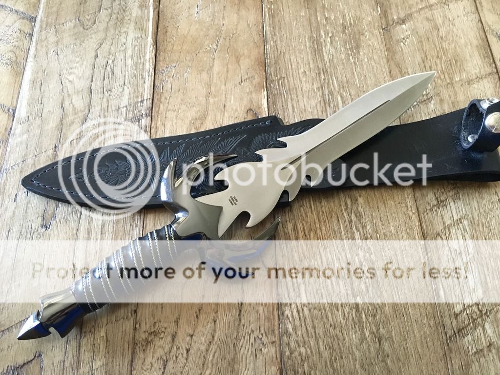 Description: Warbird fantasy dagger with leather sheath. No box.