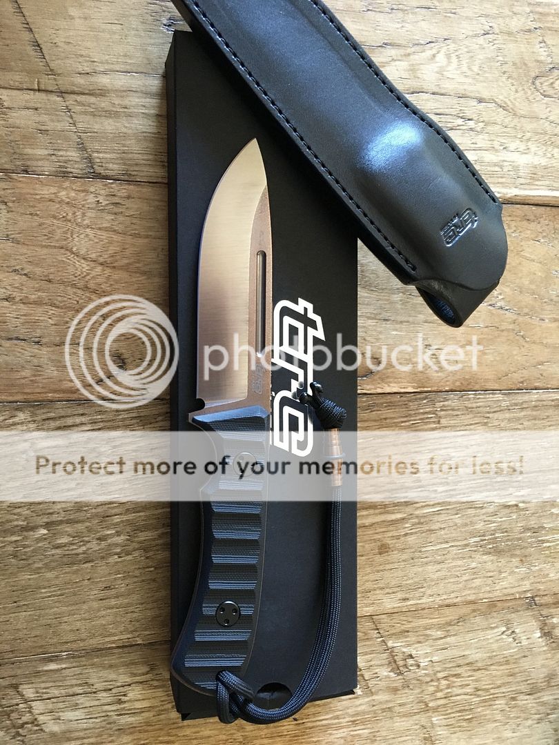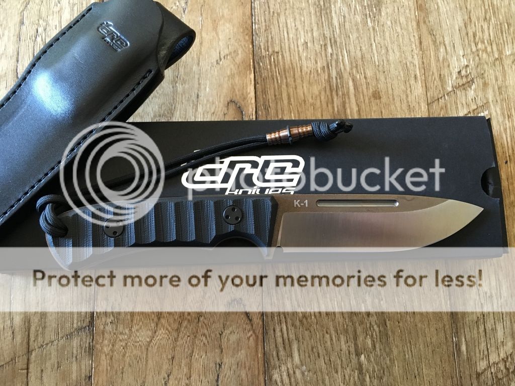 Description: black g-10 handles w/ m390 blade. Leather sheath. Box included. Will also include hinderer lanyard bead if requested.