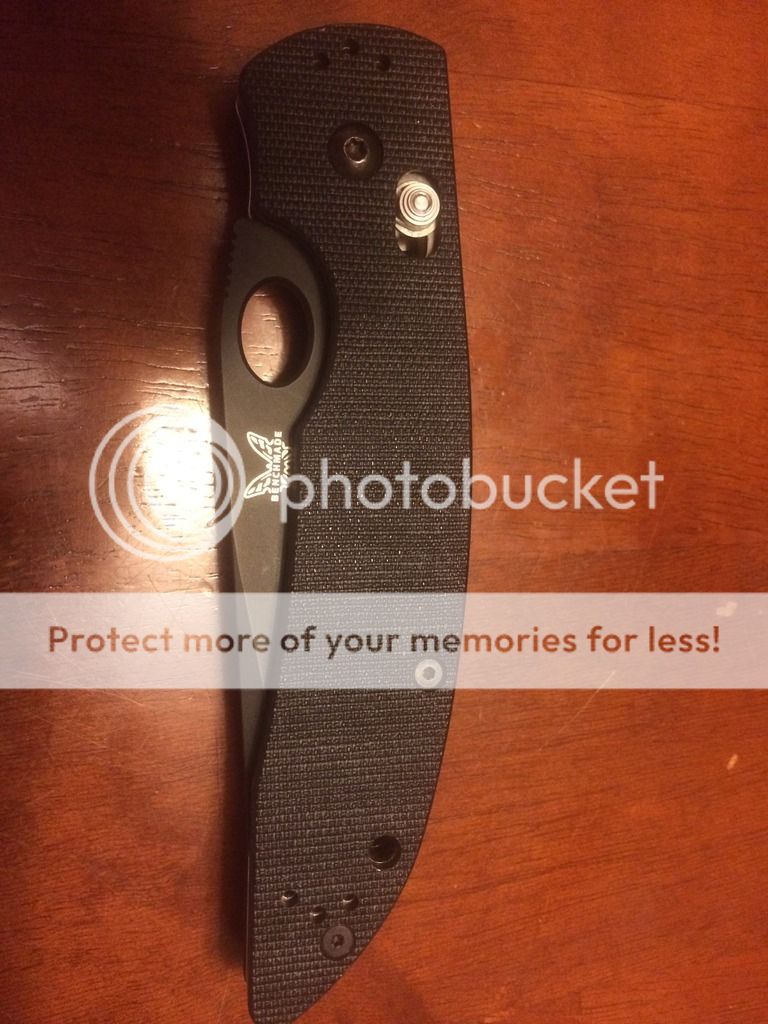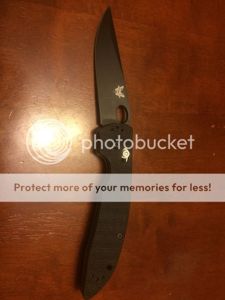 Here is a safe queen that I need to move. I have my eye on something else and this knife has just sat in my safe for years, so it's time to move it on. Not new, but very good condition BM 806 AFCK with D2 blade steel. As you can see from the pictures that the condition is very good. There are some rub marks on the blade, but they are more smudge like, the finish is not missing. This still has the factory edge, never been sharpened. The blade tends to lean towards the clip side of the knife when it is closed, but does not rub. I have never tried to straighten it, and in fact, have never tried to adjust the pivot, so this may be an easy fix. Ive let this knife sit in my safe, and have really never paid much attention to it.