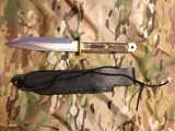 Blackjack Blue Devil throwing knife with webbing leg band sheath $50