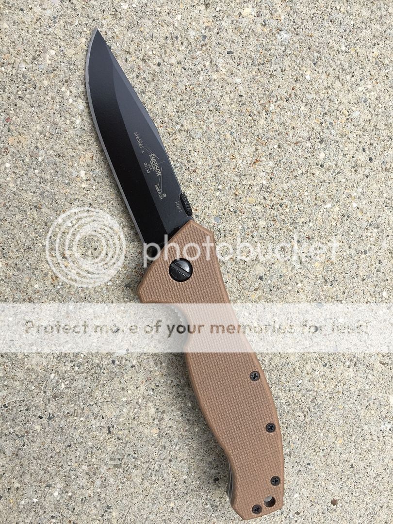 EMERSON SPEC WAR A TAN WITH BLACK BLADE. DID NOT SEE MORE THAN A COUPLE PAPER CUTS. NO BOX. NO WEAR. $160 shipped spf