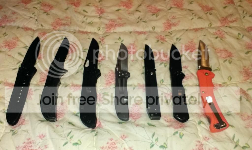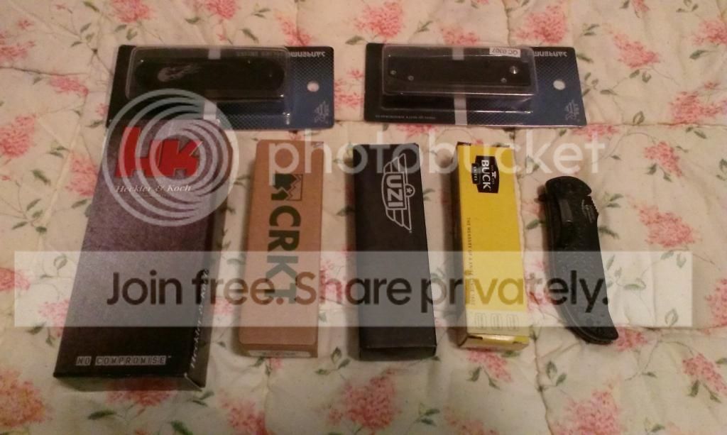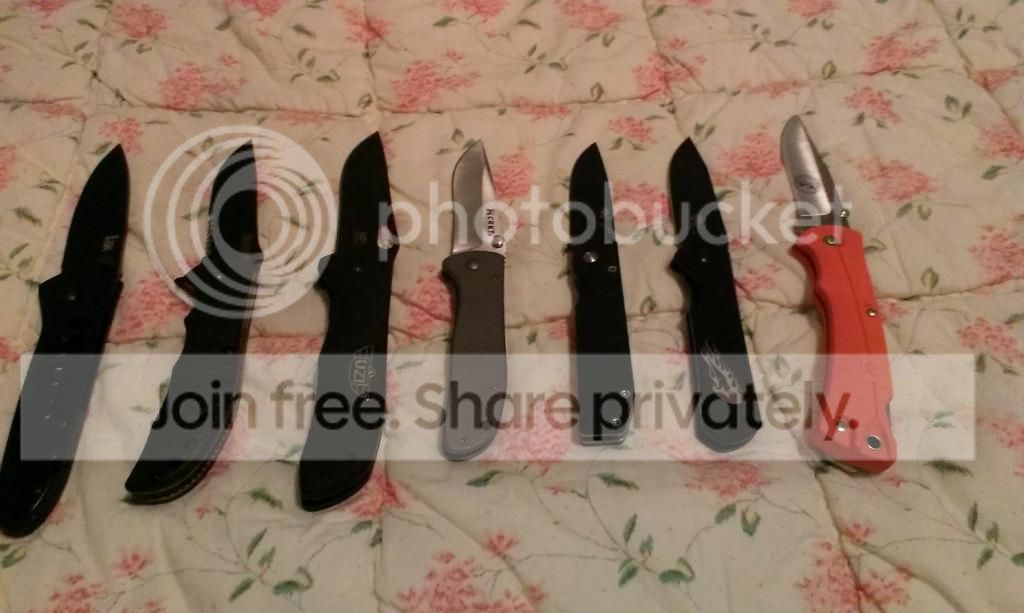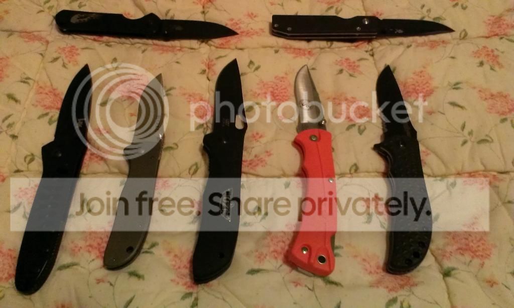 All knives are new in box (NIB) opened once for initial inspection then for this picture and never used or carried (CRKT I opened one more time for a picture session).