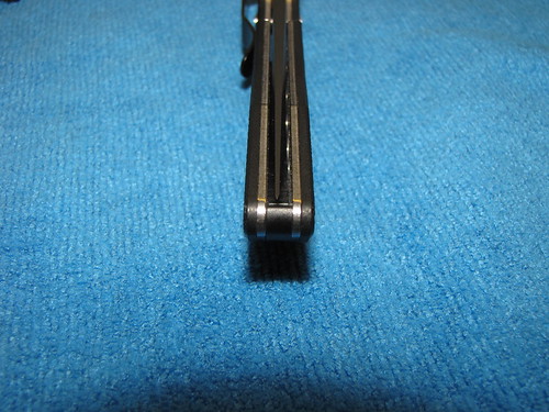 Second: Kershaw Avalanche S30V black blade, G10 scales, carried lightly used lightly, still factory edge, slight wear on clip, and some light random marks on the black blade finish. Strong positive action from the torsion bar, great lockup, blade is as closely centred as any I've seen. G10 still has the very aggressive finish. Really grippy in hand, eats pocket edges.