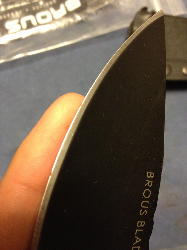 Up for trade is my Brous Blade Threat. I thought that I'll edc this, but the look of the blade just never grew on me. I have not cut a thing with it and it still has a factory edge. There are two dents in the blade that's probably from the sheath. I didn't even notice it after a while after I had received it from Brous. Everything is unused. I have only taken it out of the packaging wanting to carry, but decided against it.