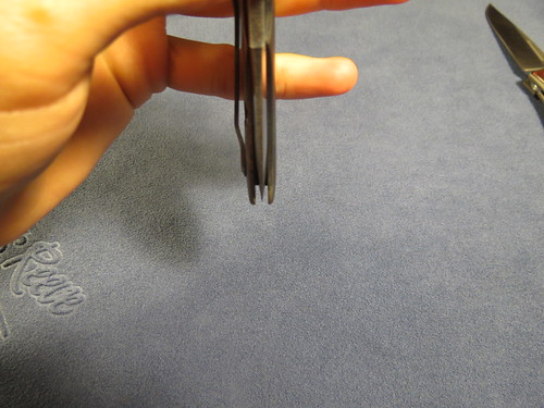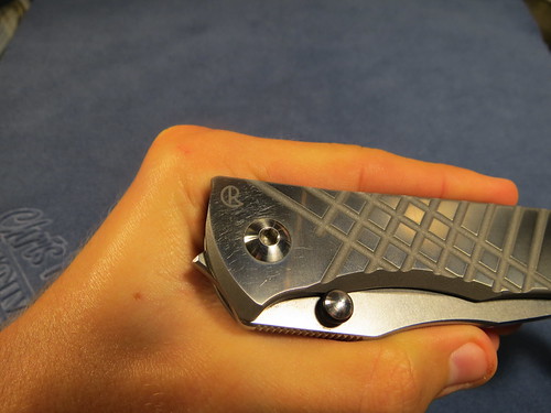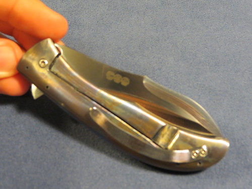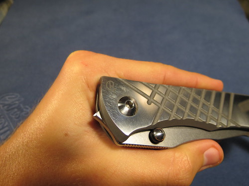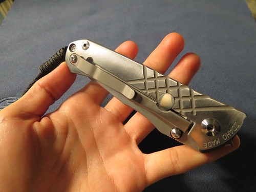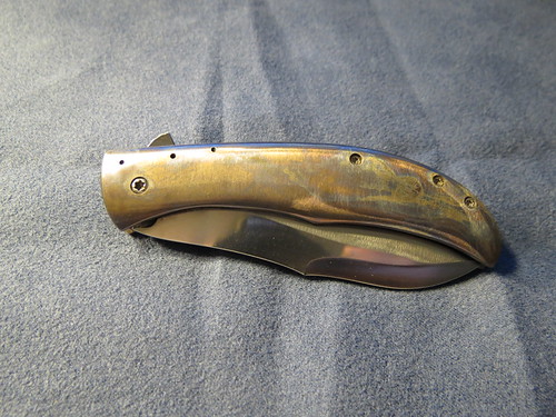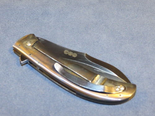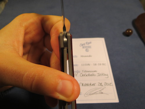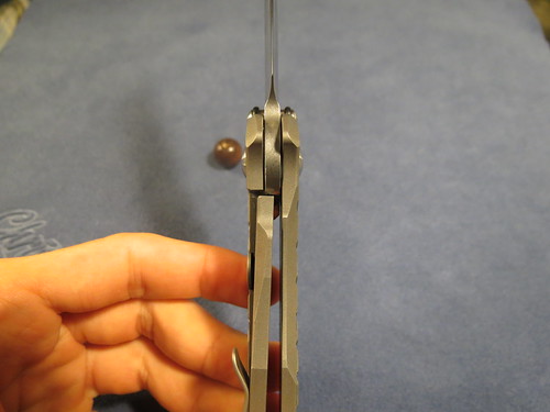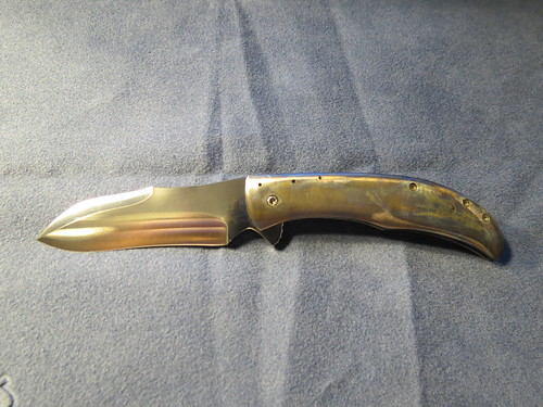 First up is the Chuck Gedraitis Ti dress folder.I recieved this knife from a trade with anouther fellow member ,as for details i dont know too much about this knife the only details i can provide is that she blade is just shy of 3", about 2 7/8" and that the handles and thae clip are titanium ,and that it has a black g10 backspace. but that pretty much it .as for the lock up id say its around the 60% but its solid as a rock there is a slight bit of sticking but its not too bad ,as for blade play it only has a tad bit side to side but that can be fixed by tightening the pivet some.the action of the flipper fine but does require a bit of rist flick to get it open .Heres some pics of the knife .forgot to metion there are some marks on the blade and handles that can be viewed in the photos down below .