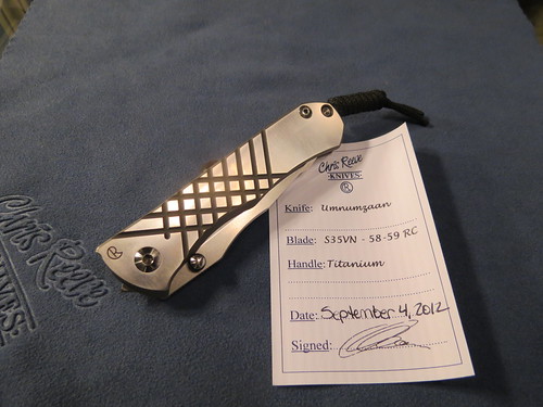 Hello Guys i thought id just test the water with these knives ,at this moment im only really interested in a couple of knives .but ill put what im looking for further up down on this page. Im wiling to trade multiple knives for what im looking .Anyway the knives that are for trade 2 of them are Chris Reeves Knives ,one of them is a umnumzaan and the other is a mnandi with the Cocobolo inlays. And the last knife is a Chuck Gedraitis Custom ti dress flipper .ill put a better description for each knife with the pictures .