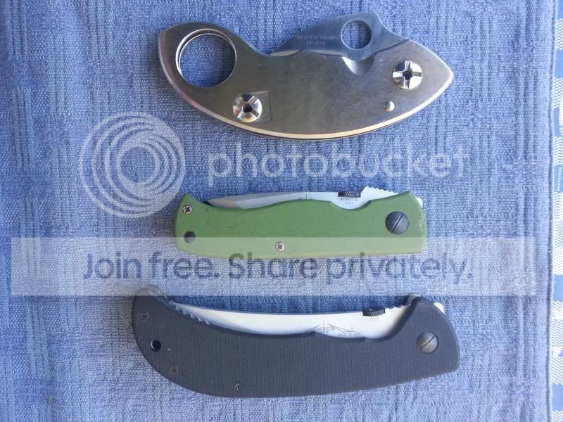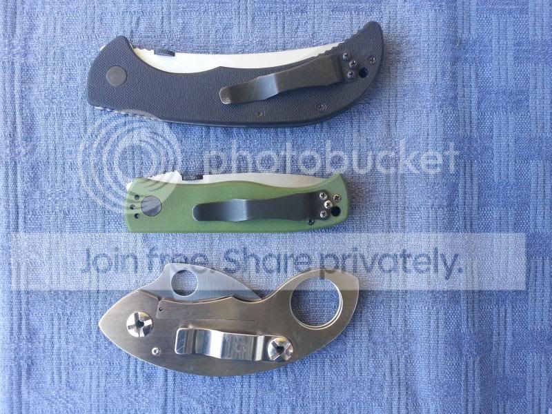 3) Spyderco Karambit. Carried and used. Slight scratches on the SS (non locking side) and some deeper scratches on the pocket-clip. Box included. (PENDING)