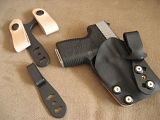 Includes the tuckable tan loops, slimline clip, and standard clip - each are for a 1 1/4" belt. Right handed carry. Purchasing altogether and with shipping it will come out to about $127.50 on their website and about a months build time, in Texas with Tax it would be $135.06. I am only asking for $90 and it is available now. This price does include Priority shipping in a small flat rate box.
