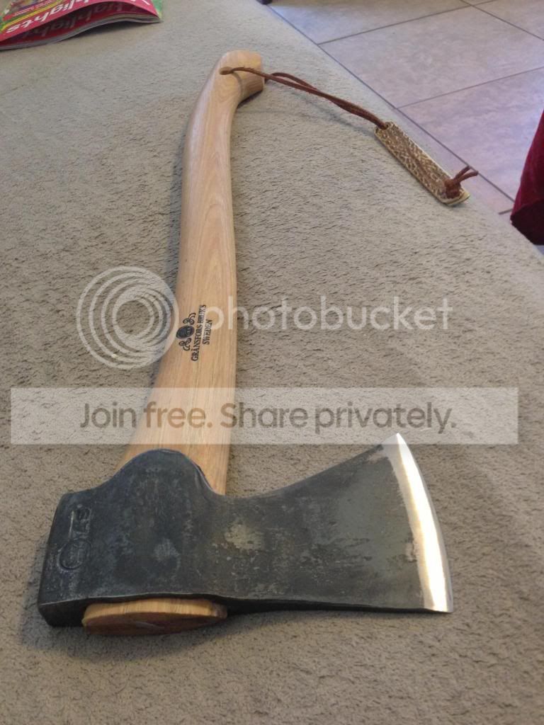 I have a lightly used Gransfors Bruks small forest axe with custom made leather mask. I'm interested in trading for a Spyderco Gayle Bradley folder lnib. I'll post pics later. If interested you can email me through the forum. Thanks- Jason