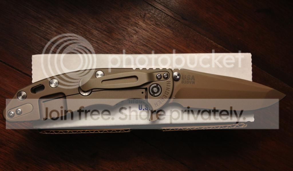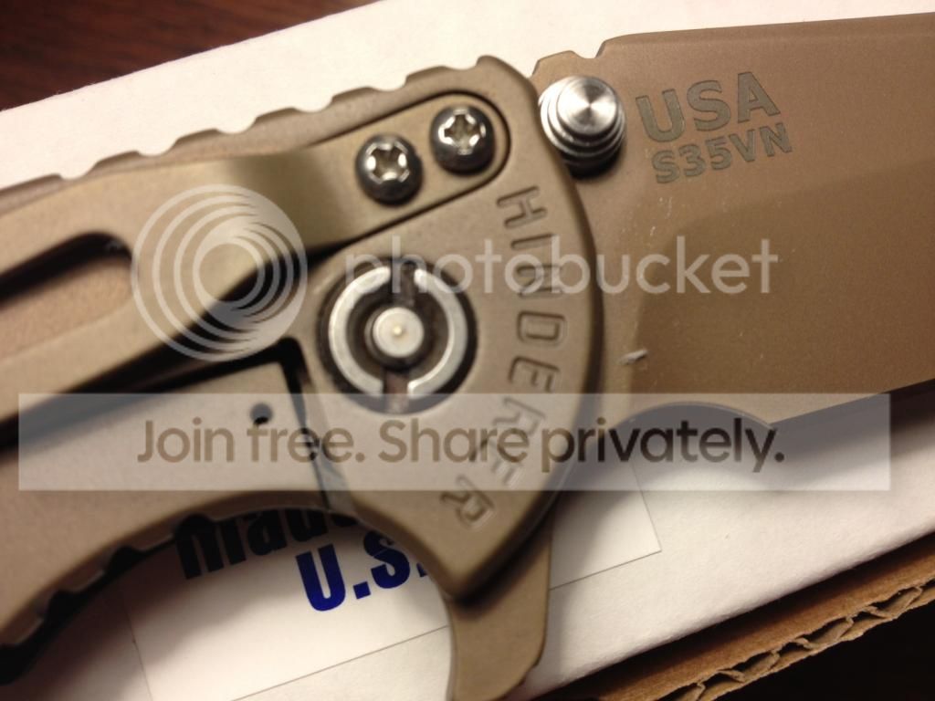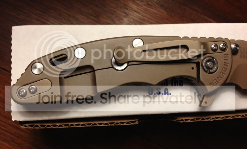Near perfect Hinderer XM-18 3.5" spanto in FDE DLC with ti standoffs and screws and green/black scale. Perfectly centered, early lock-up, all factory. There is one tiny make on the lock side next to the pivot. Looking for other Hinderers and customs. Shoot me a PM or email at watchknut AT hotmail DOT com.