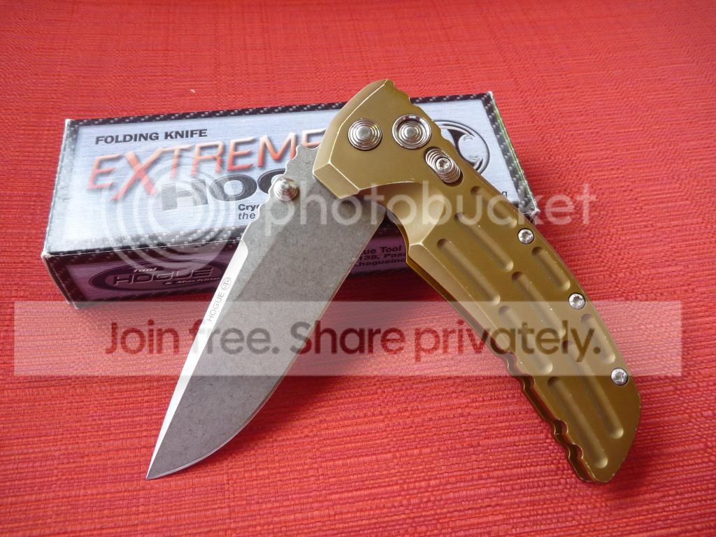 ok guys this is a catch and release for me, its the 3.5in Aluminum OD green.. i cant get paste it not having any texture on the scales, to slippery for me. so she has to go..it has some wear on the top part of the scale, it was from i am assuming pocket carry, i dont see any nicks, dings, dents on the scales anywhere just a lttle bit of rubbing on the edges from pocket carry. blade is perfect unsharpened and really sharp. smooth as butter opening and closing no blade play at all. locks up rock solid. comes with original box and warranty card.