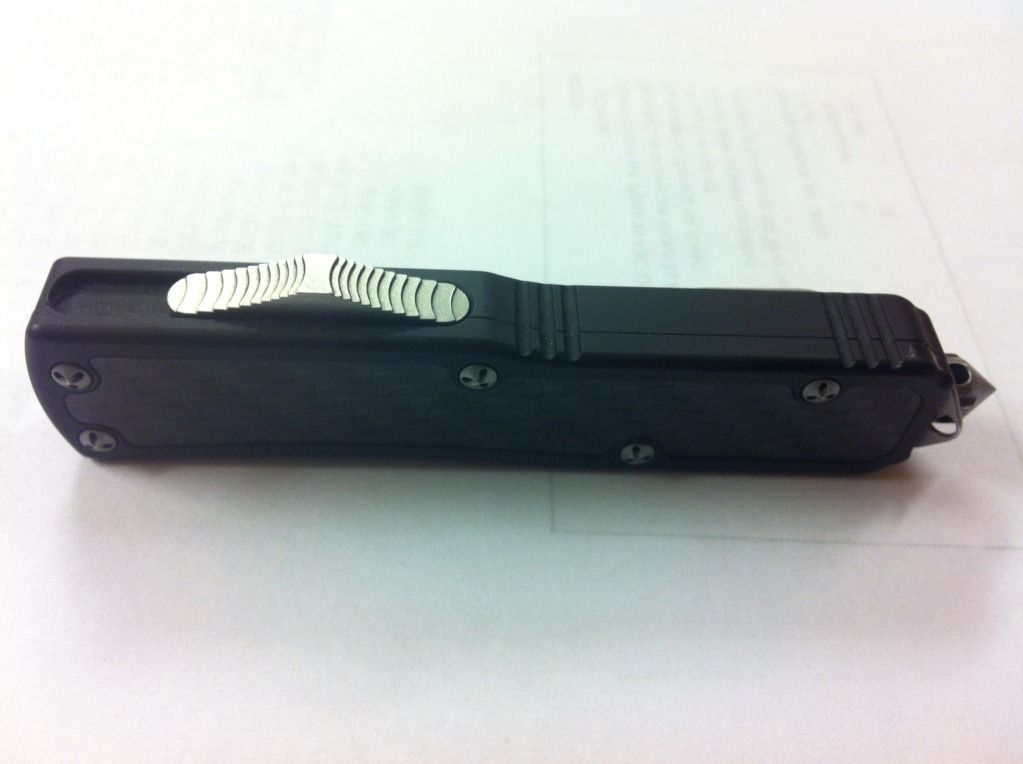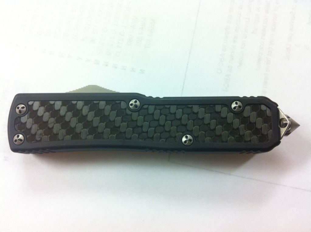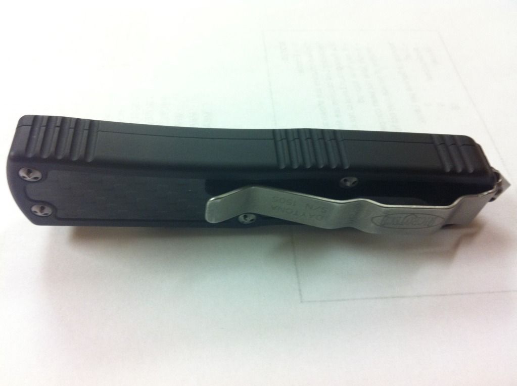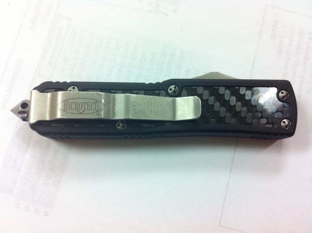 I have a Microtech Daytona Carbon Fiber with black (two tone) single edge drop point blade (S35-VN). I've only had it for about 3 months and it still has the factory edge on it - it has very light use (opening letters and the occasional box). The date on it is 06/2011, S/N is 1505. Its a great knife, I just want a bigger one. Will trade for a Scarab (NO FAKES!!!) If no one is interested, I'm planning on putting it on ebay (I know I'm not supposed to), but if someone IS interested please contact me at jacob.wilbert@gmail.com. I'm looking for a Scarab with the same type blade I have (non-serrated) and prefer a black blade. I like pretty much all the handle colors they were made in. NOT INTERESTED IN OTHER KNIVES!!! PLEASE DO NOT ASK!!!