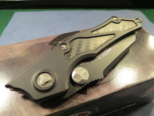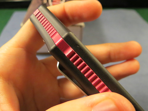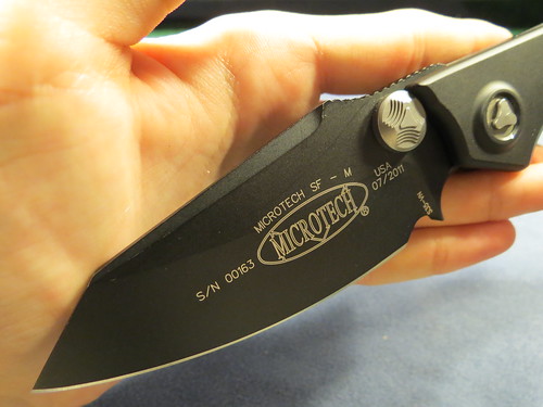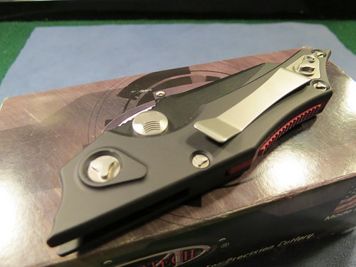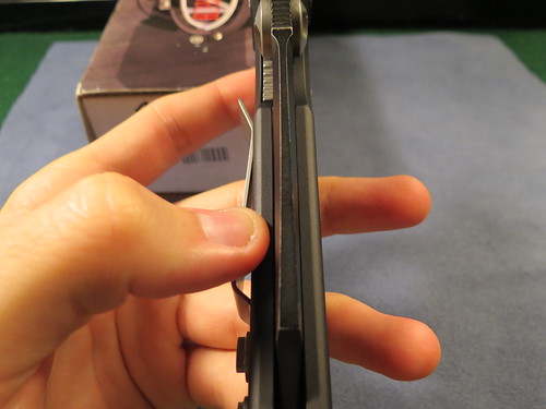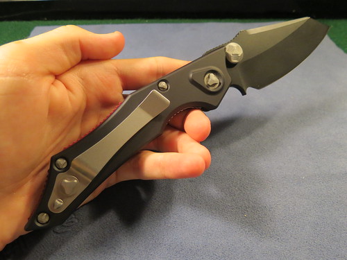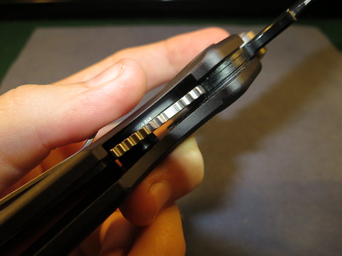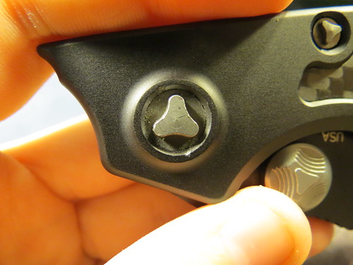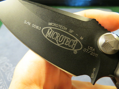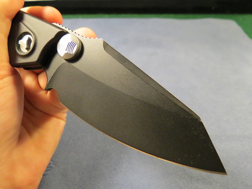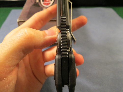 I got this in from a fellow forums members about 2weeks ago it has been slightly used by the orignal owner all ive done with it was polish the edge some the get it a little sharper,there are only 4 marks on this knife the first one is on the pivet screw that looks like someone tightened it with a flathead screwdriver ,the next one is on the spine of the handle from somthing , the next one is on the spine of the blade from the sheathe im gueassing thats the worst of the marks .the last two are marks on the coating on the both sides of the blade. all the marks can been seen in the pics .