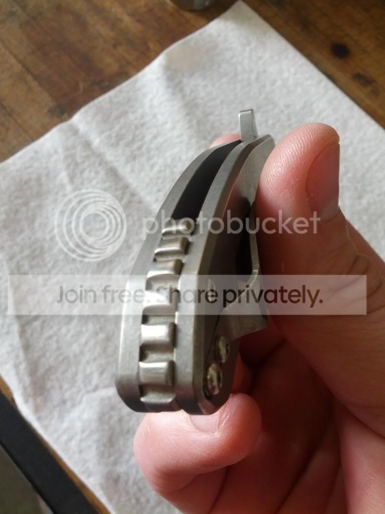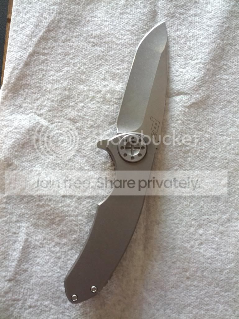 I'm looking to possibly trade my F3 3.5", N690 blade steel, for a ZT 0777 M390, but NOT the black DLC coated version. I am not looking for anything other than this. When I had Dave build this for me, I asked him to round the back of the spine of the blade similar to how a Sebenza is, as well as the Ti backspacer, and he did an excellent job. This knife has been carried a few times, but never cut anything. There are no marks anywhere, blade is factory sharp, and it looks just like the day I got it from him. Flips with little effort, and very fast. Lock-up is less than 40%, and the blade is centered. The stainless steel stand offs are inside the backspacer, if you prefer a more open, cleaner look. I'm getting another F3, so I don't really need two. If you're interested, email would be best lonspen at yahoo dot com. Show me what ya got! Here's the pics...