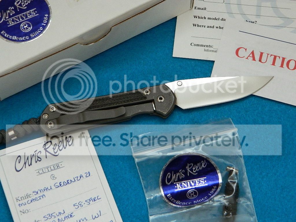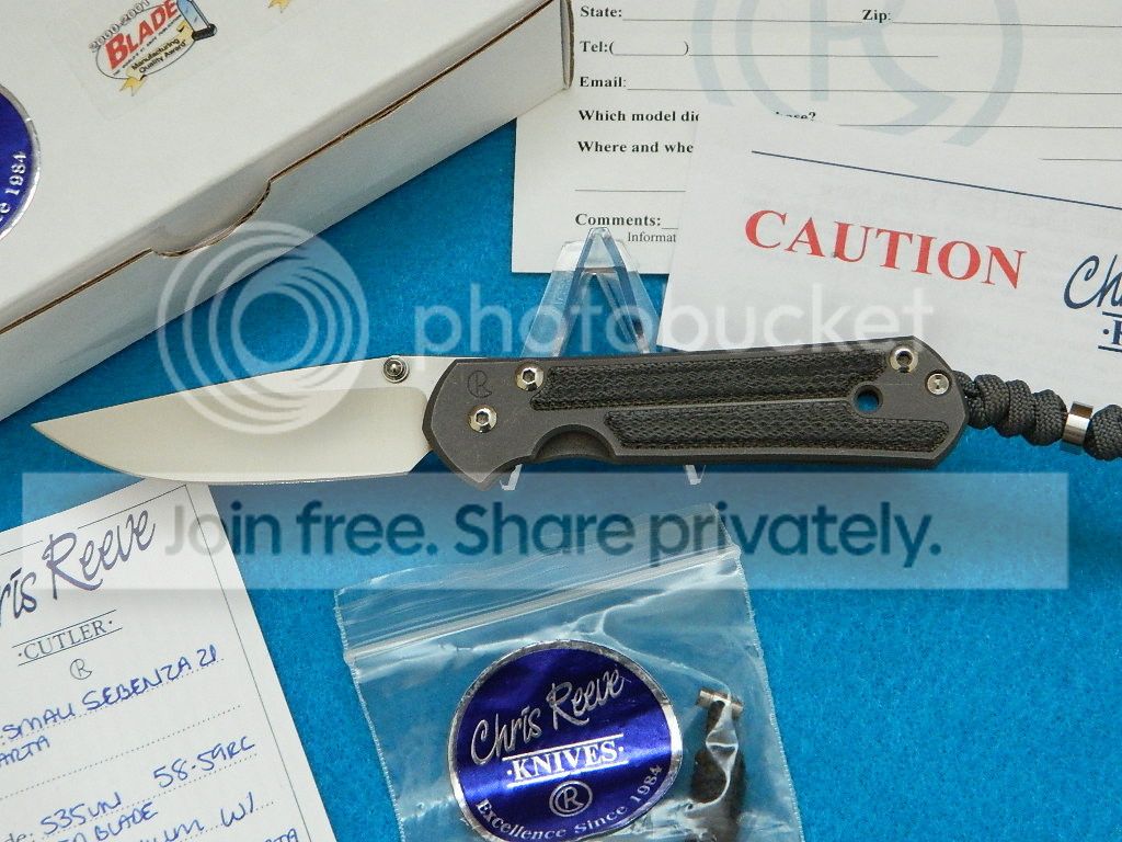 I have a lightly used small Sebenza with micarta inlays I would like to trade. It has been lightly used and some carry marks on the titanium and light scratches on the blade. It is a little too small for me.