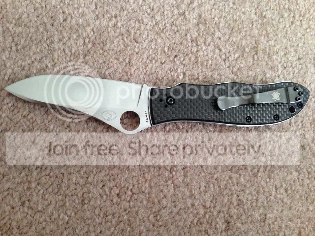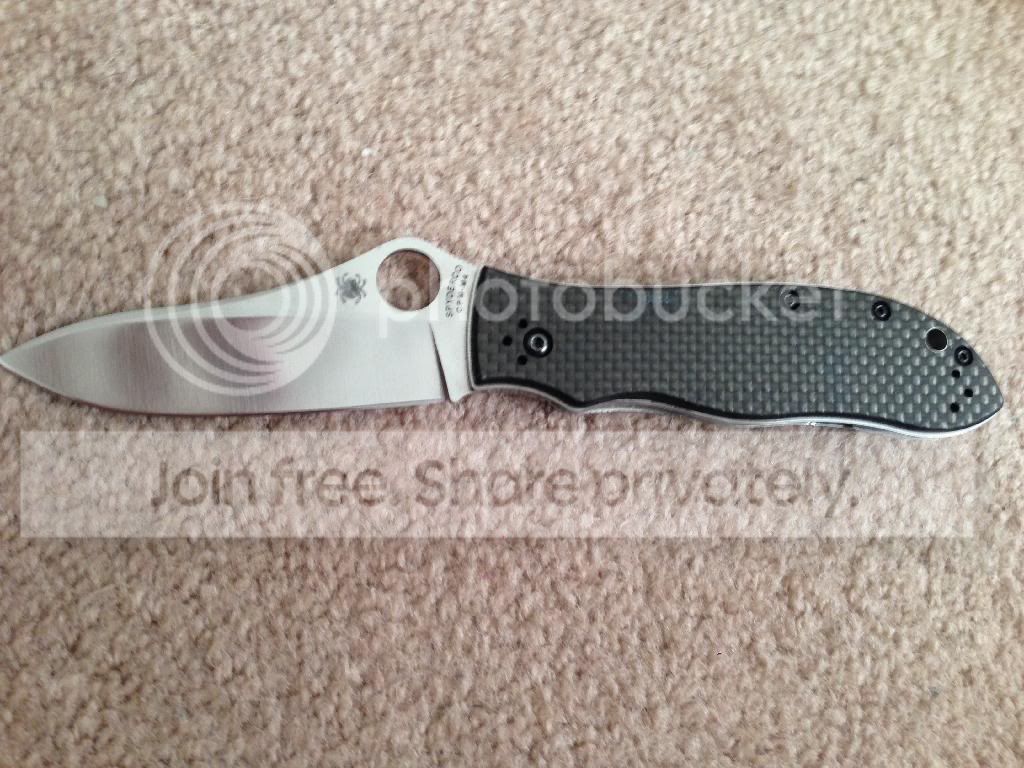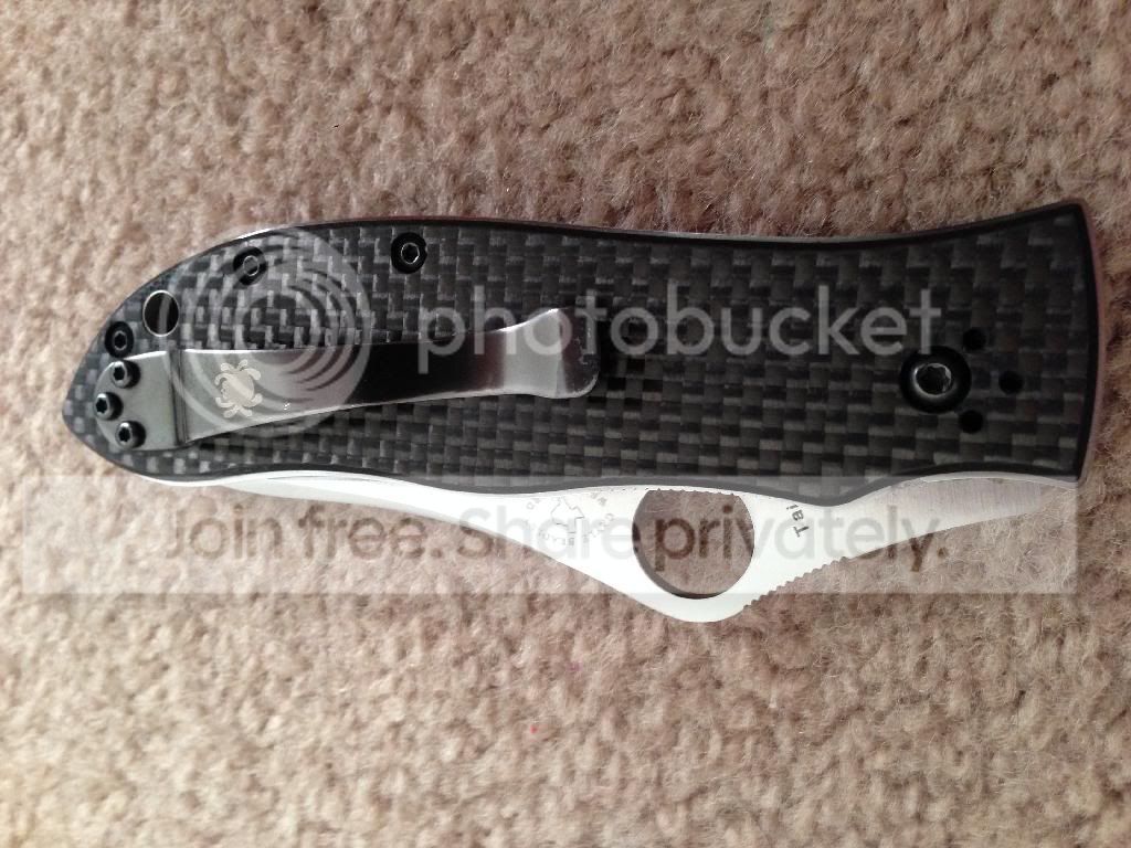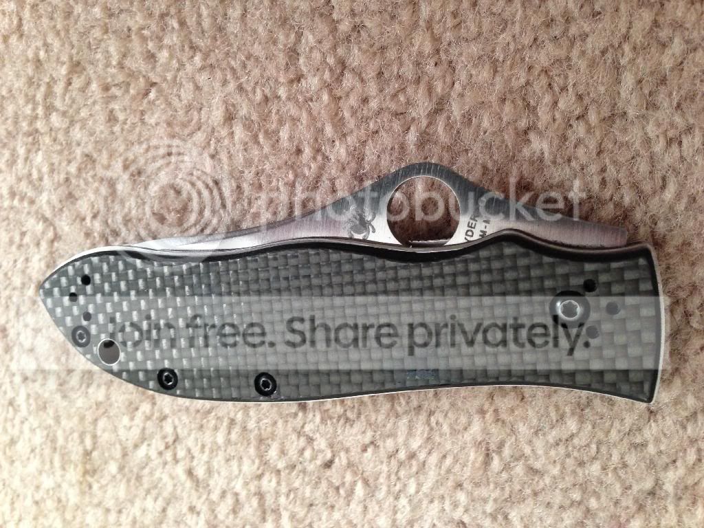 ETA- scales are G10 laminated carbon fiber and scale has been slightly dremeled for easier deployment. Blade is satin M-4 at 61-64 Rockwell.