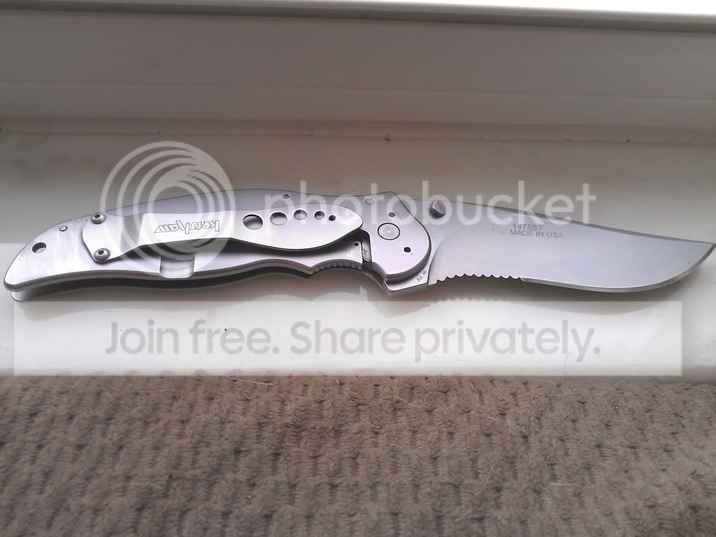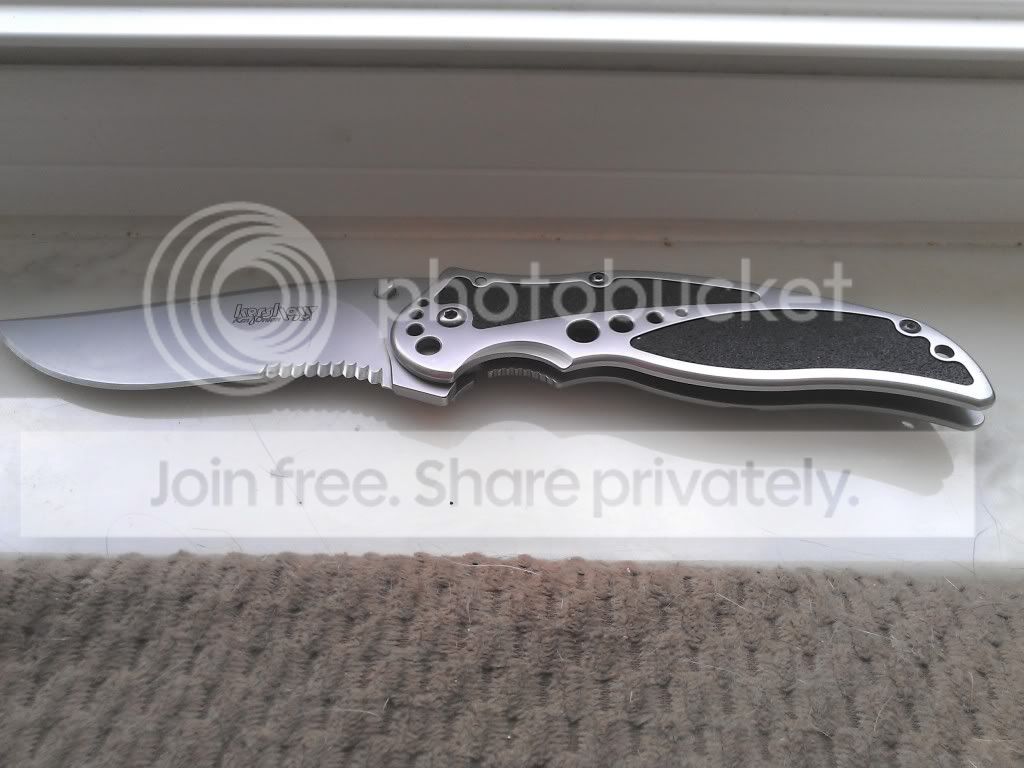 WITHDRAWN - KERSHAW STORM 2 - Satin/Combo edge - carried once, some scratches at the butt of the knife from rubbing against something in the field