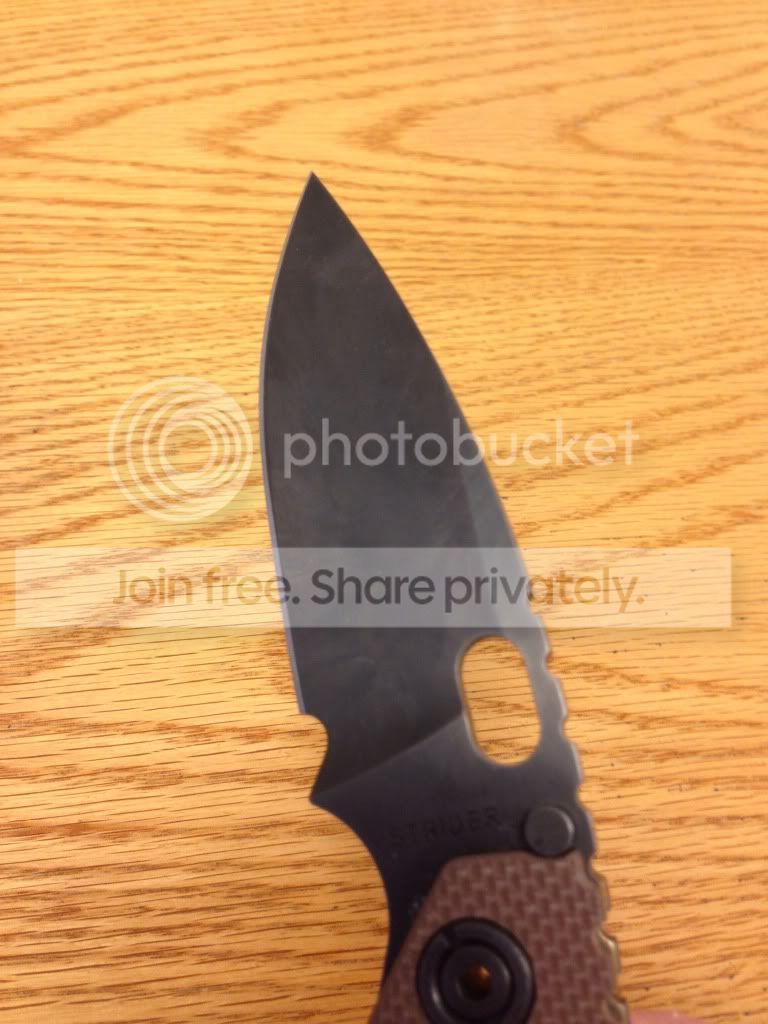 About 2 weeks ago I decided to jump onto the Strider train and try out a Strider SnG. I purchased the knife brand new from Knifeart.com. I have always been a CRK guy, but wanted to try out a new style/steel/type of folder and the SnG was calling my name. But, Lo and Behold, my affinity for CRK products has over powered me and I now desire to trade this for another CRK.