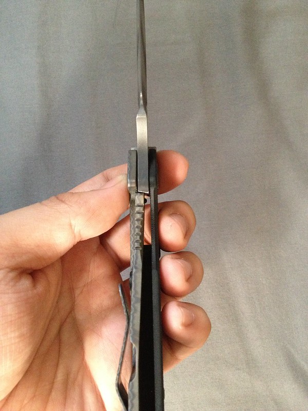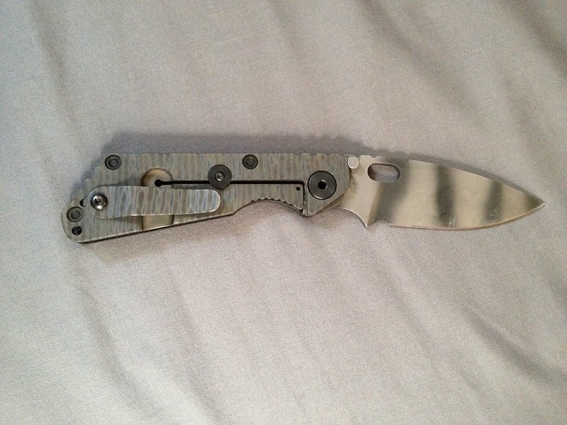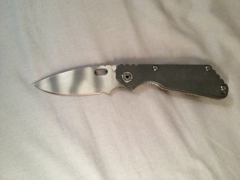 Up for trade is my User Strider SnG. I figured I'll put it up for trade before posting it for sale in a few days. It's just not seeing much pocket time anymore and ever since I start edcing fixed blades. There's still plenty of life in this knife. The blade centering is a bias to the G10 side, but the lock up is solid as a tank. It's almost like a fixed blade. The action is smooth, but could use a bit of lube. Lock up is at 60%. It has the new lock up
