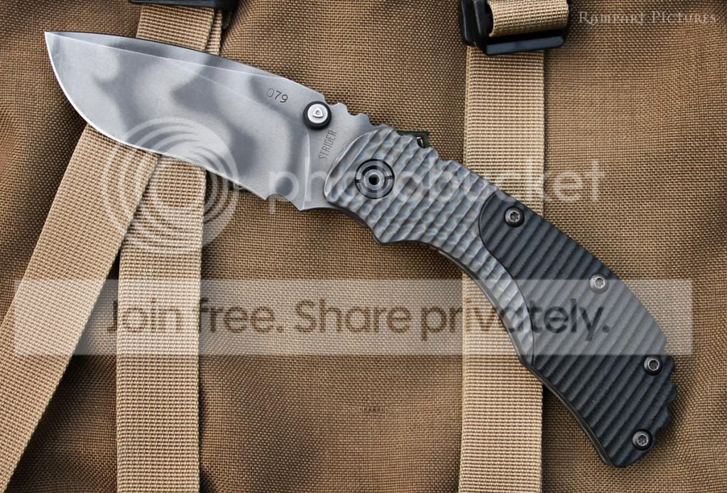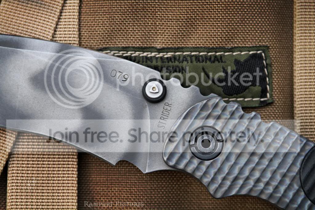 I have a excellent condition Strider TAD Gear RC #079 with Tritium thumb stud inserts and S30V blade steel. It's rock solid with NO rock lock or side to side movement and great centering. I'm wanting to trade it for a Duane Dwyer SMF Right hand Chisel Ground knife, Horton folder, or possibly a Crusader Forge folder.