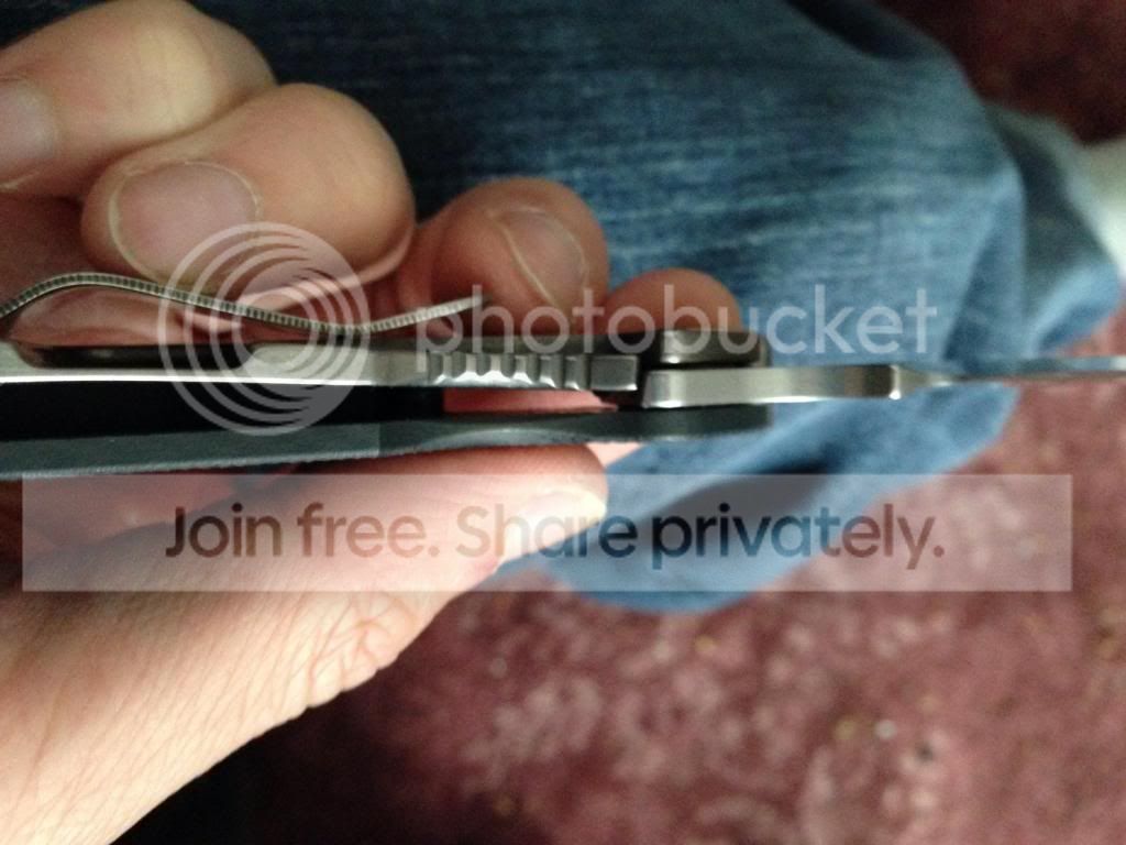 Not the first owner, there are marks on the G-10 near the pivot, lock up is new and at about 60-70%, it has slight up and down play.