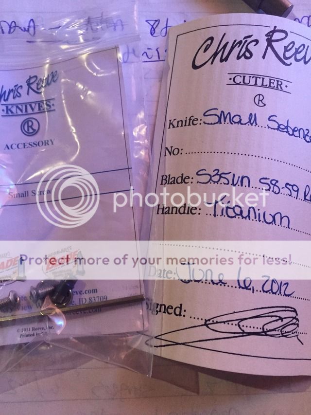 For an even trade for my Small Sebenza S35VN clip-point with lanyard and box and card ect...