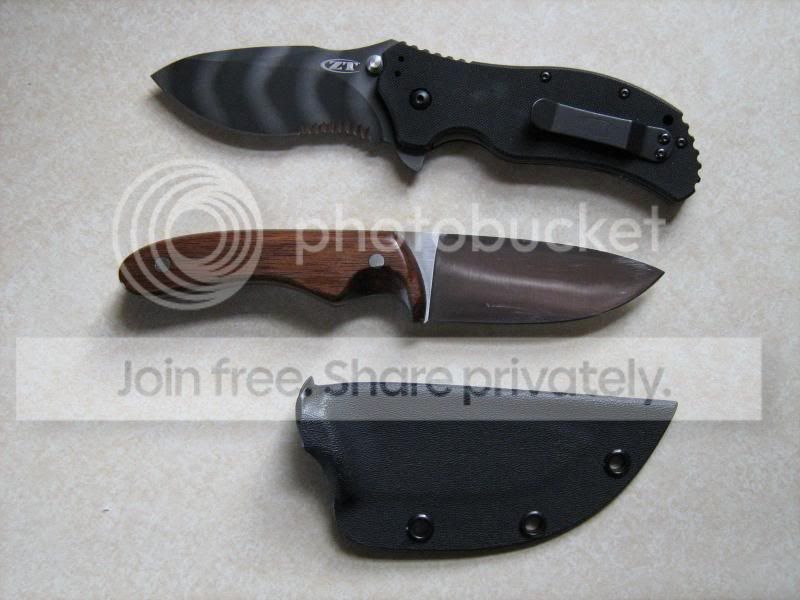 I'd like to trade these two knives for a like new tan Benchmade Adamas 275? I have a ZT 350 and a small fixed blade I made. It's 1/8" 1084 steel full tang and walnut scales. It's been used very little. The ZT is a new factory second. Might consider other trades if I don't get a Benchmade 275.